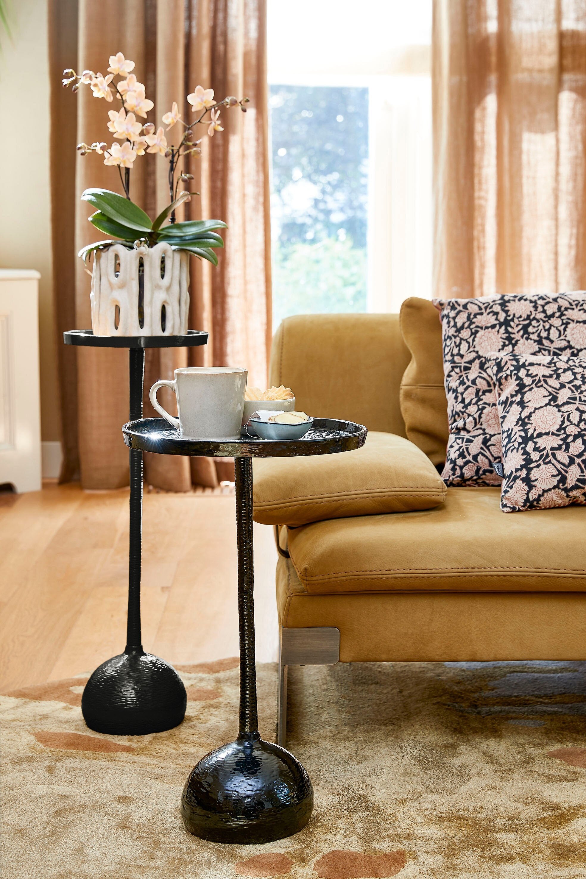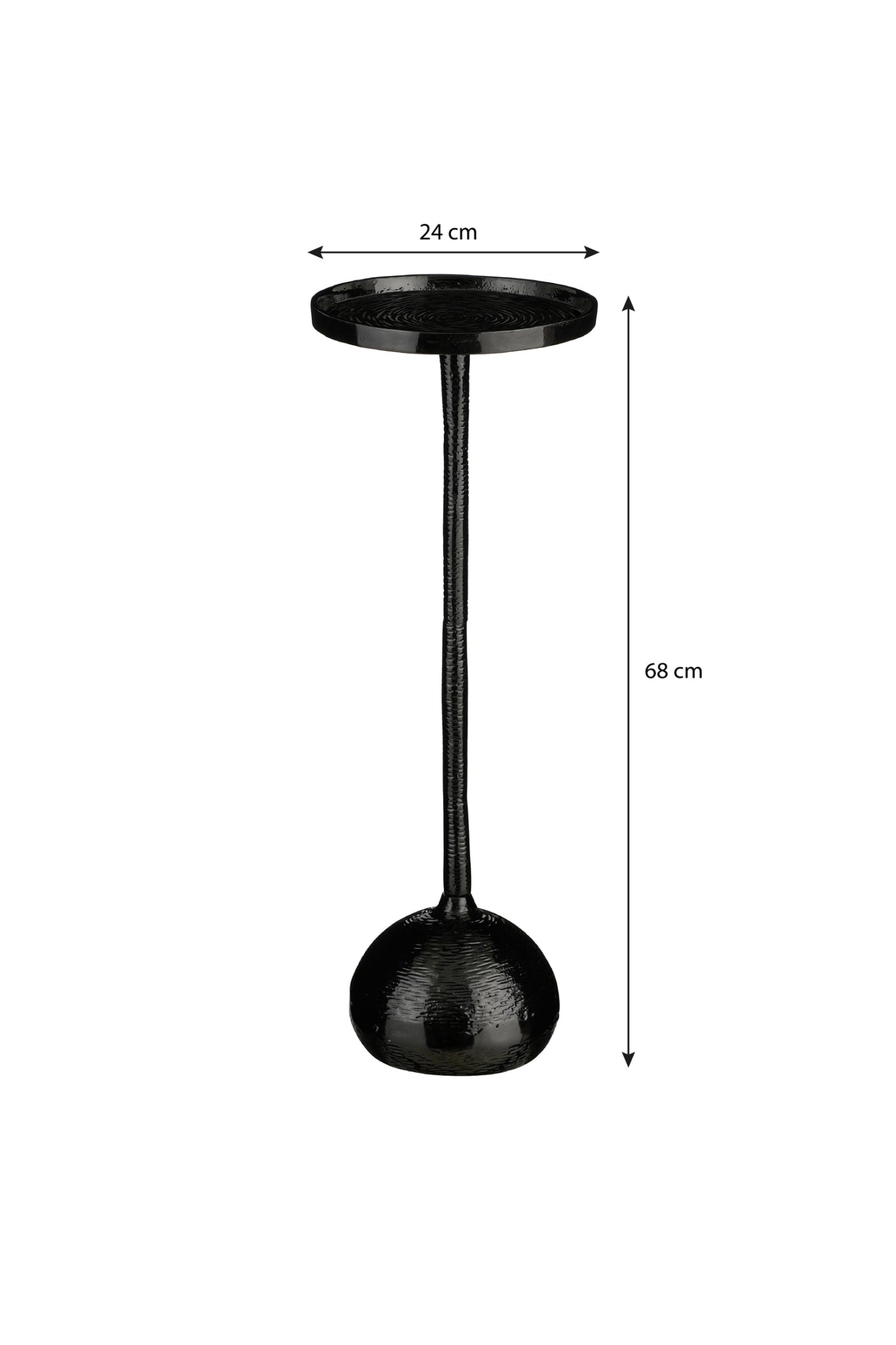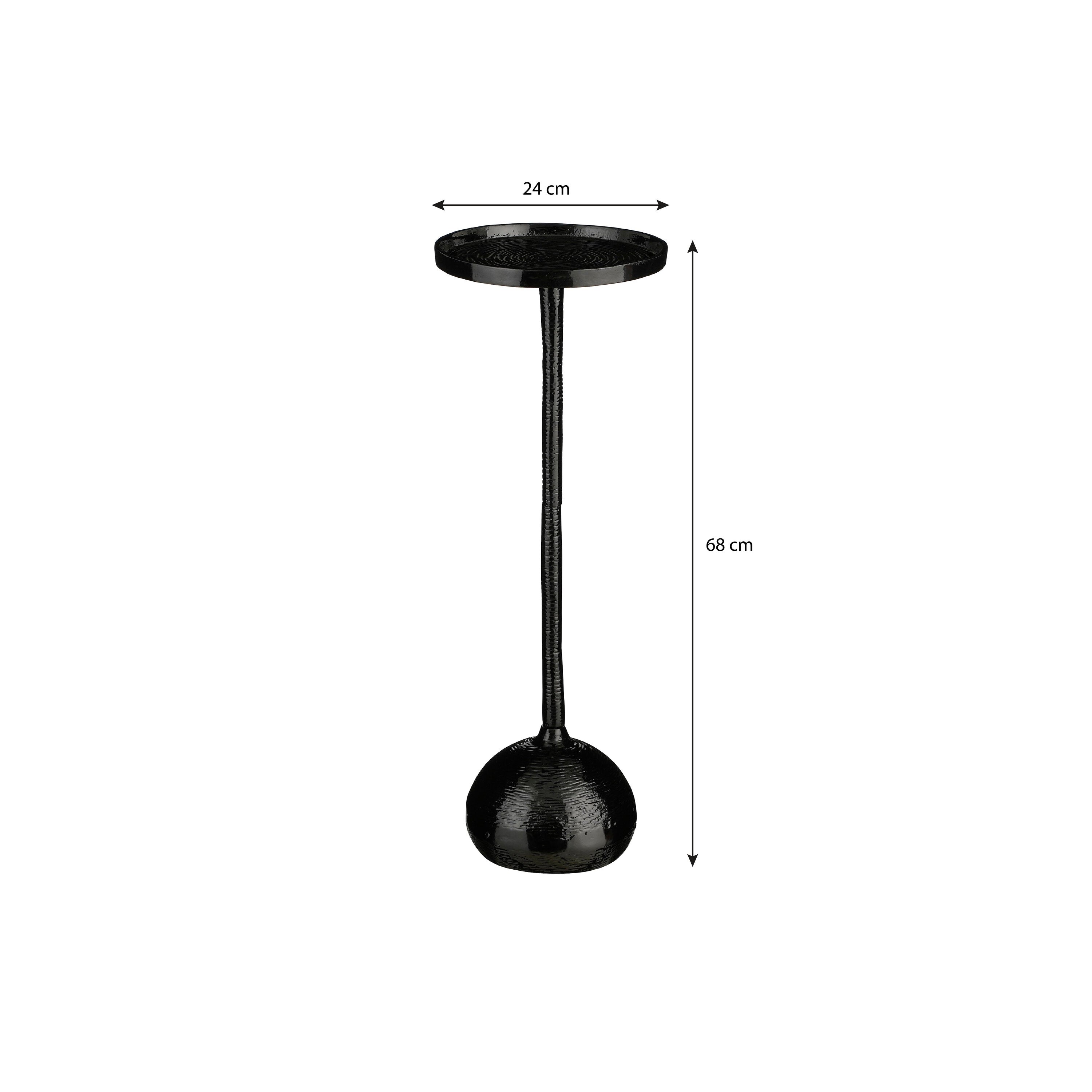 De Colin bijzettafel van Mica Decorations is een veelzijdig tafeltje! Hij is gemaakt van gerecycled aluminium, heeft een hoogte van 68 cm en een diameter van 24 cm. De zwarte tafel heeft een groot, rond blad met een lange, smalle hals, waardoor je hem eenvoudig, met een hand, kunt verplaatsen naast een stoel, bank of zelfs bad. Handig om je kopje koffie of een boek binnen handbereik te hebben! In het aluminium zit een streepstructuurtje, wat zorgt voor een verfijnde uitstraling. Mix en match deze zijtafel met de andere Colin-bijzettafels van Mica Decorations om een speels effect te creëren!