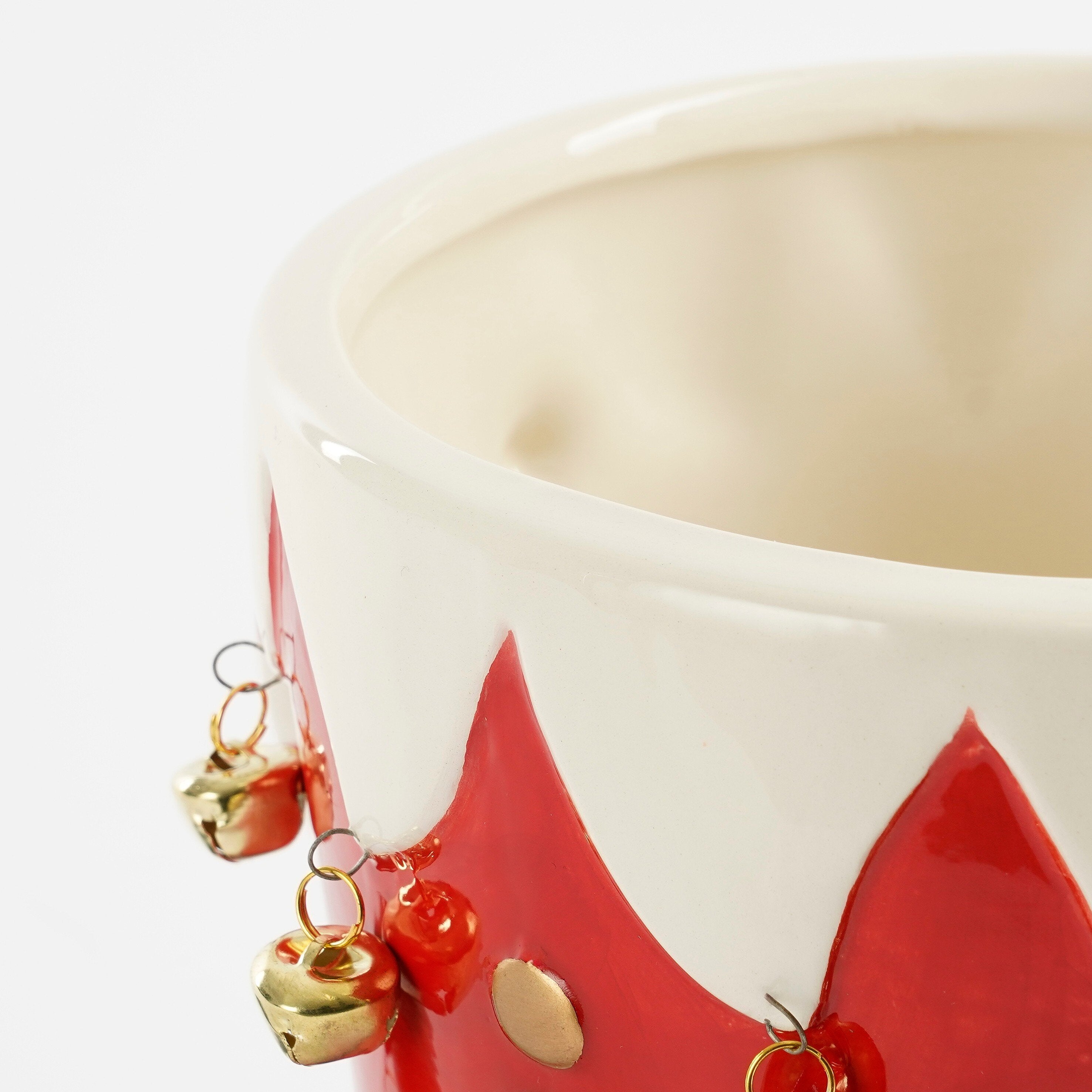 - Vrolijke bloempot in kerststijl die direct zorgt voor een speelse sfeer in huis