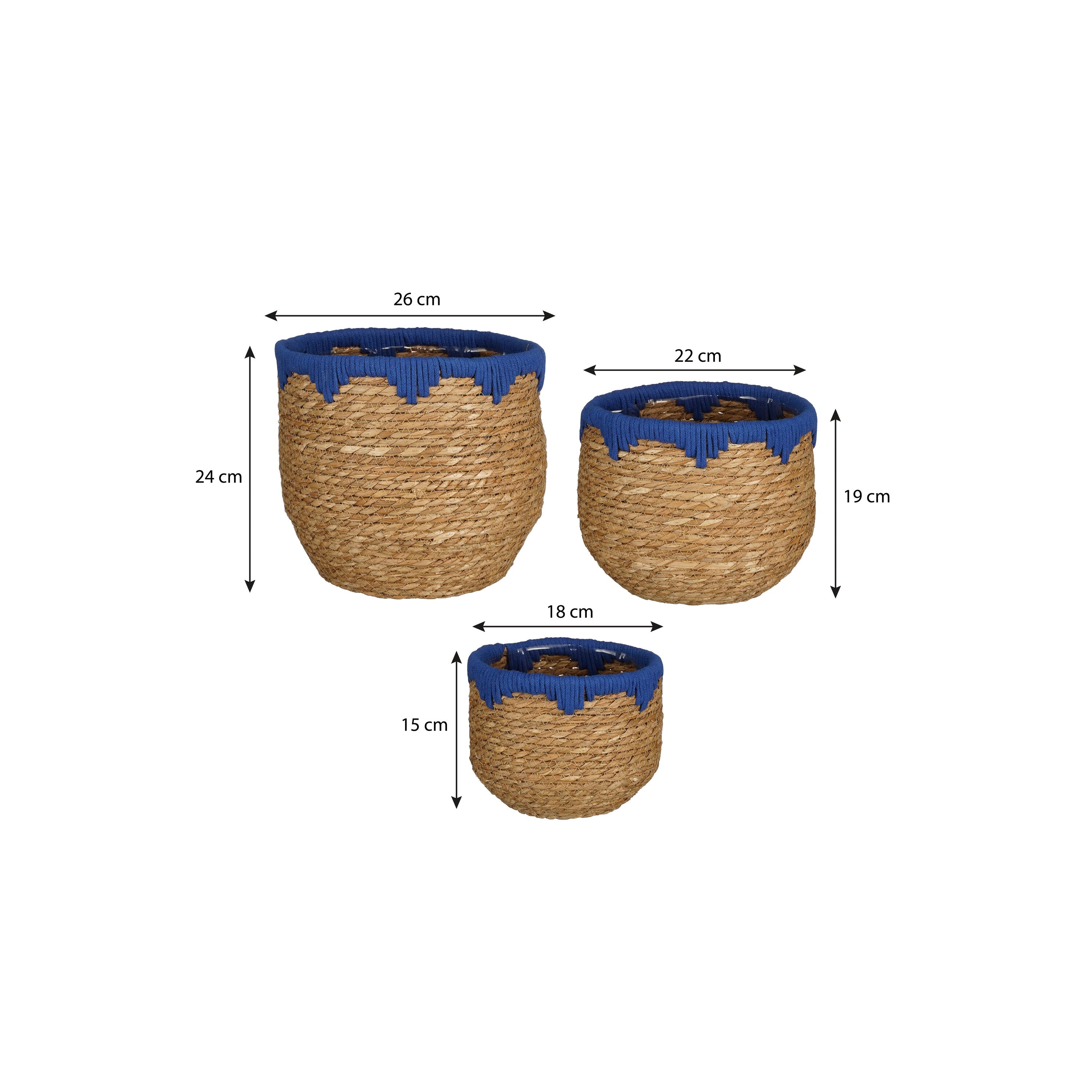 Mica Decorations Jorck Plantenmandenset - H24 x Ø26 cm - Blauw