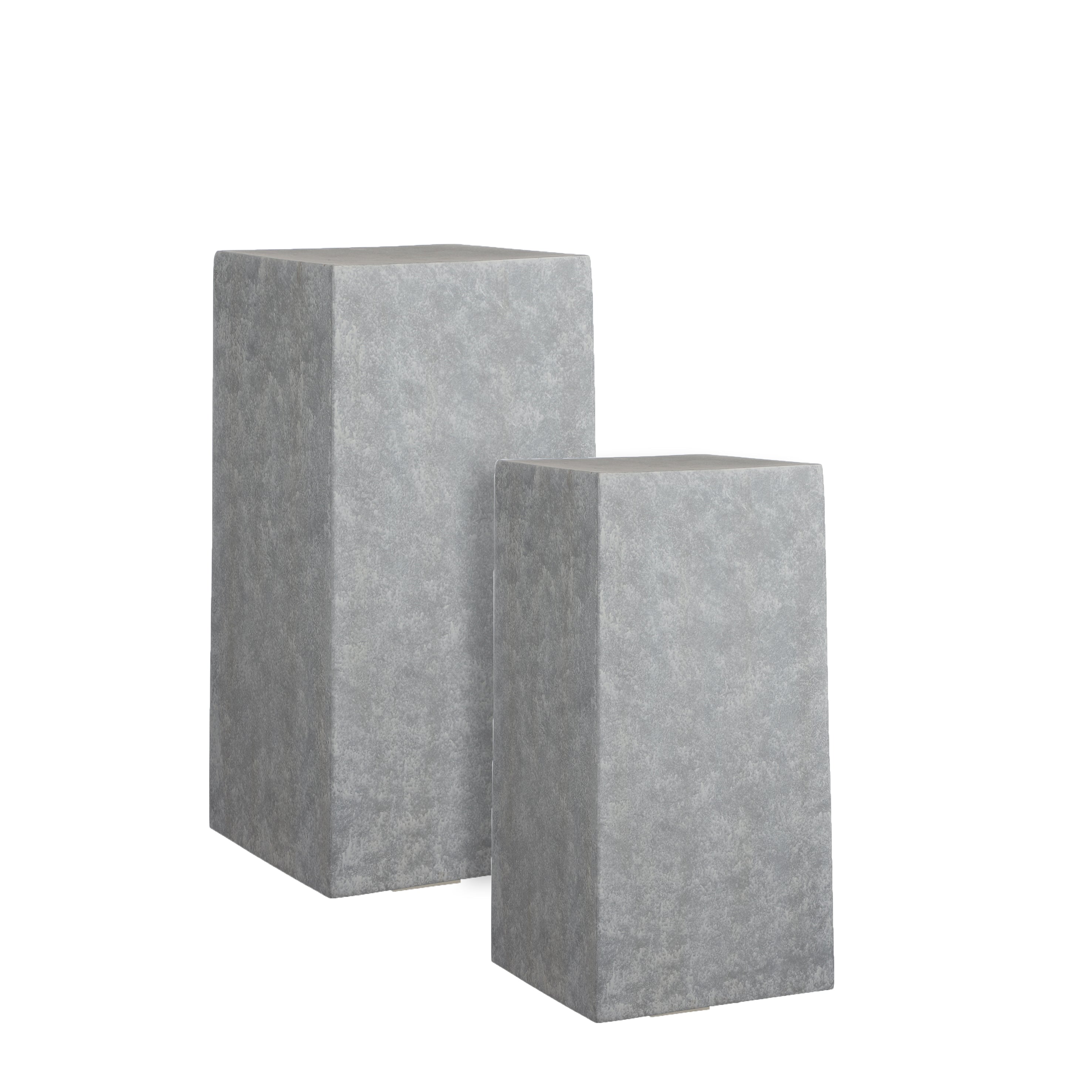 De sokkels zijn geschikt voor zowel binnen als buiten. Hij is bestendig tegen vorst en UV straling. Elke sokkel heeft een betonlook waardoor hij een stoere sfeer creëert.