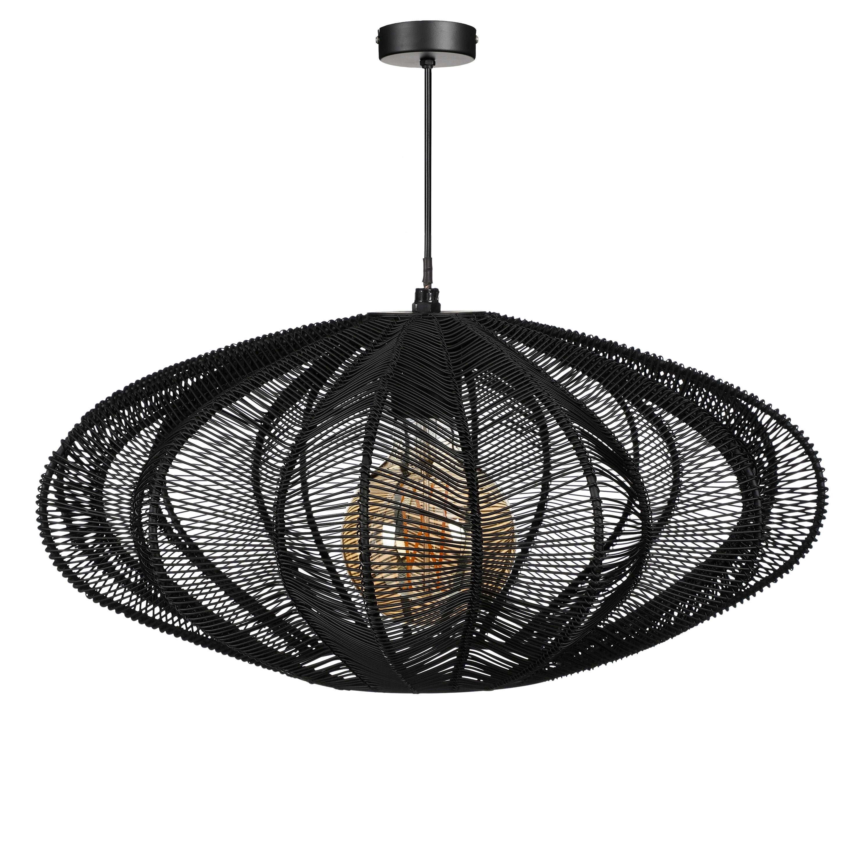 Zwarte hanglamp gemaakt van mooi gevlochten metaal voor een prachtig lichteffect. De moderne hanglamp is 20 cm hoog en heeft een diameter van 41 cm.