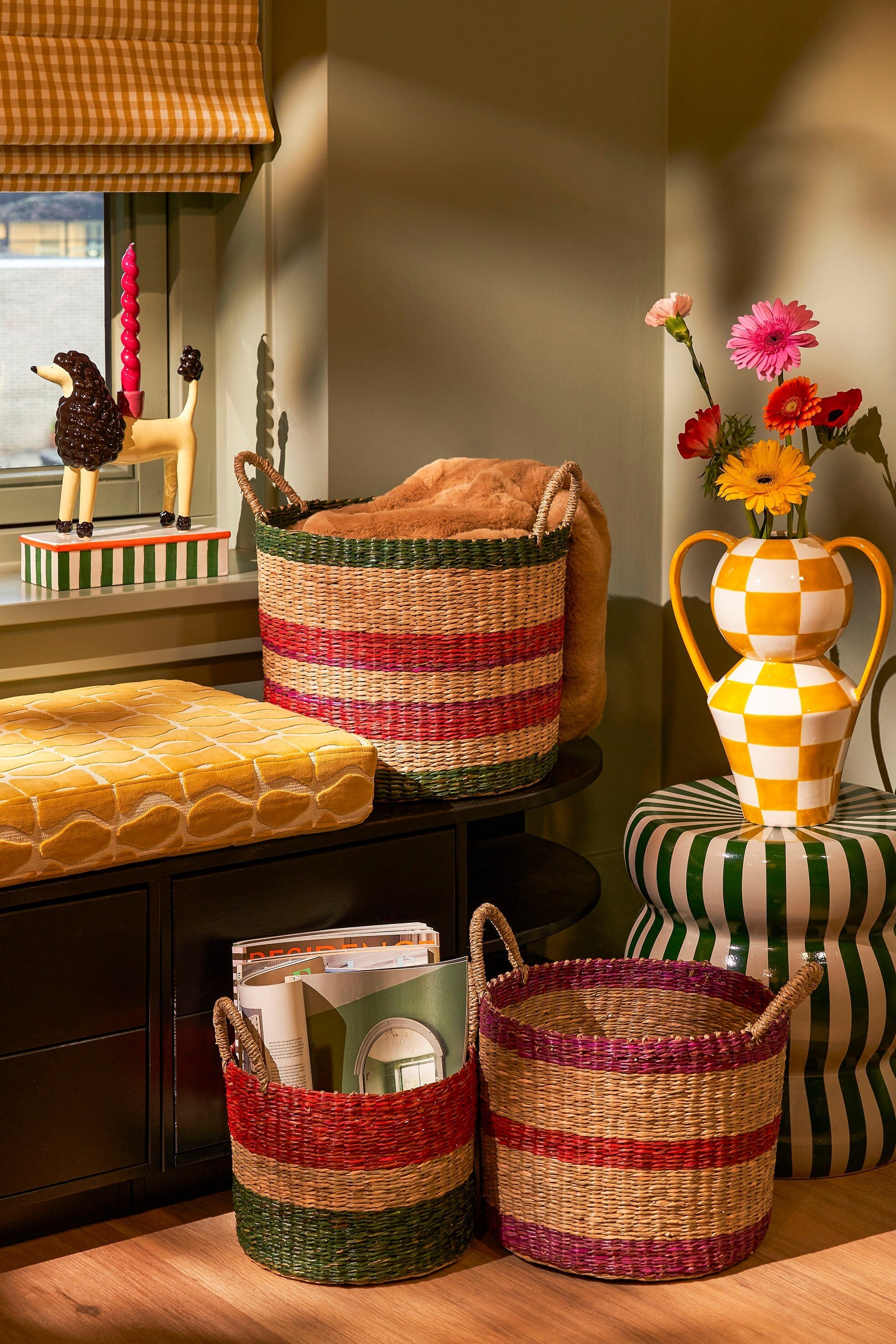 Mica Decorations Mand - H29 x Ø32 cm - Bruin, Rood, Groen, Roze