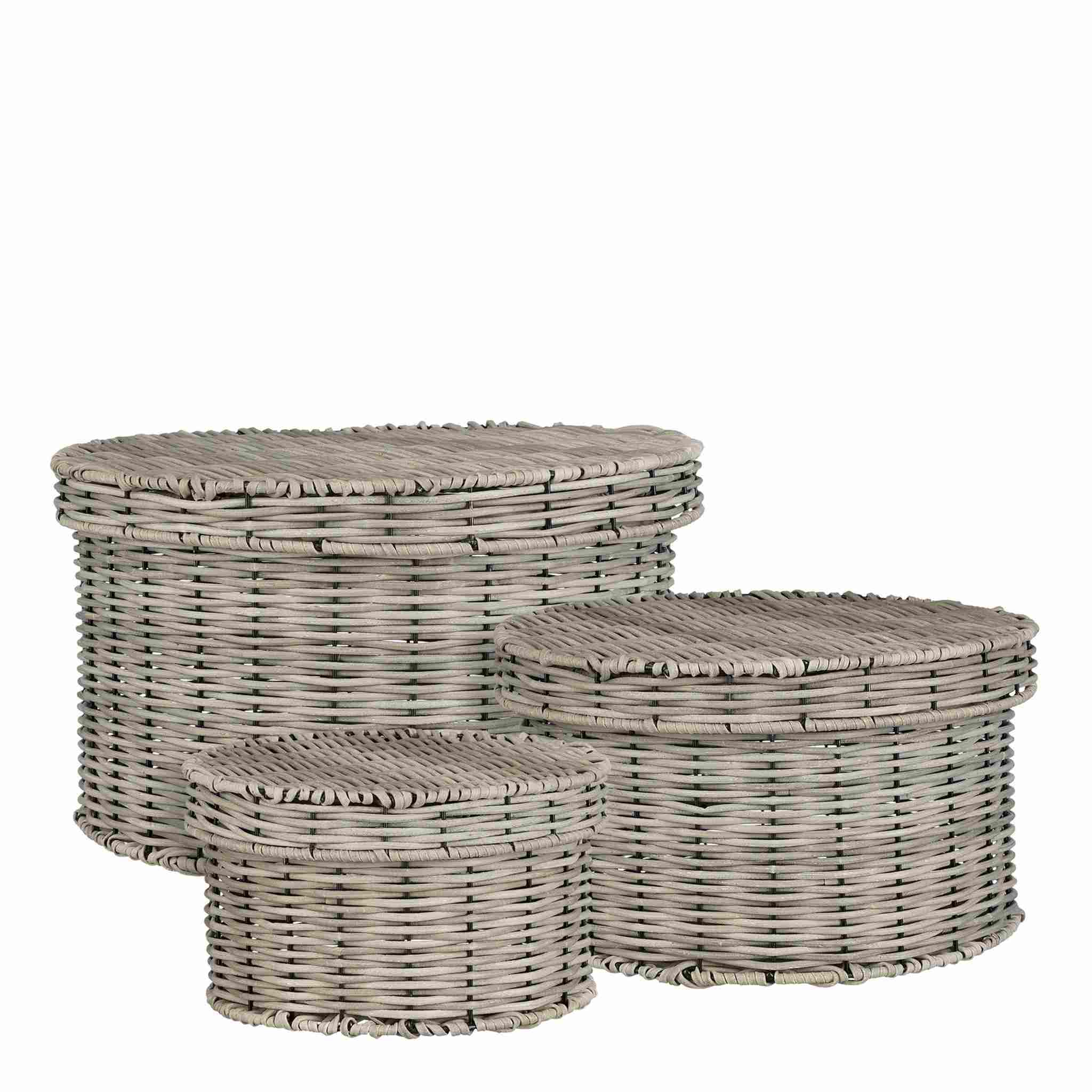 Mica Decorations Mand Liam - 44x44x26 cm - Polyester - Grijs - Set van 3