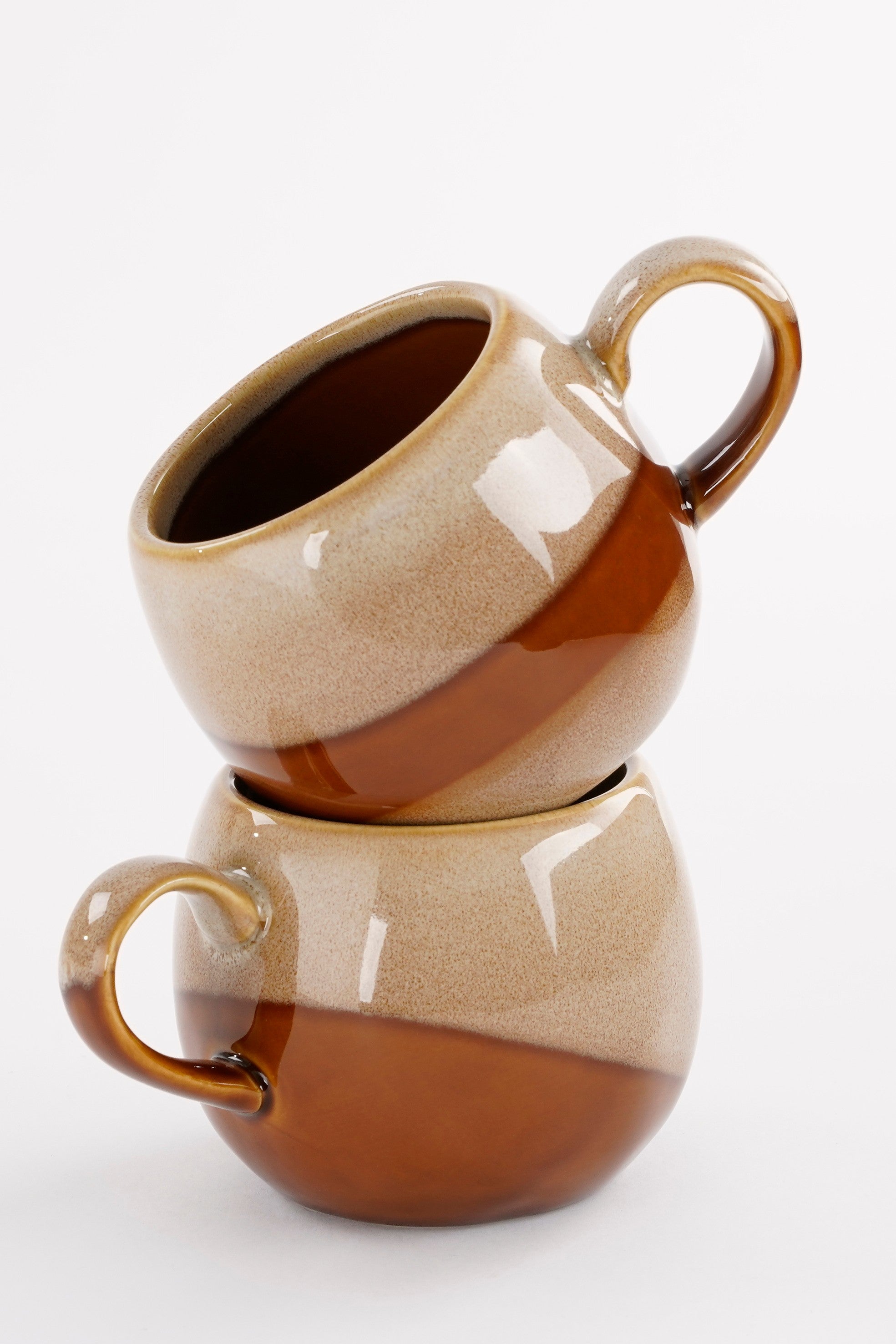 Mica Decorations Pagus Mok - Set van 2 - 450 ml - Bruin
