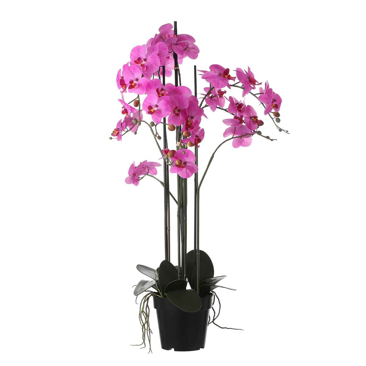 Maak het extra gezellig in huis met de phalaenopsis in pot van Mica Decorations. Dit is een mooie orchidee met een aardige hoogte (97 cm). De combinatie van de fraaie, subtiele kleuren en het feit dat deze kunstplant wordt geleverd in een mooie, glanzende pot, maakt dit al jaren een zeer populair model.
