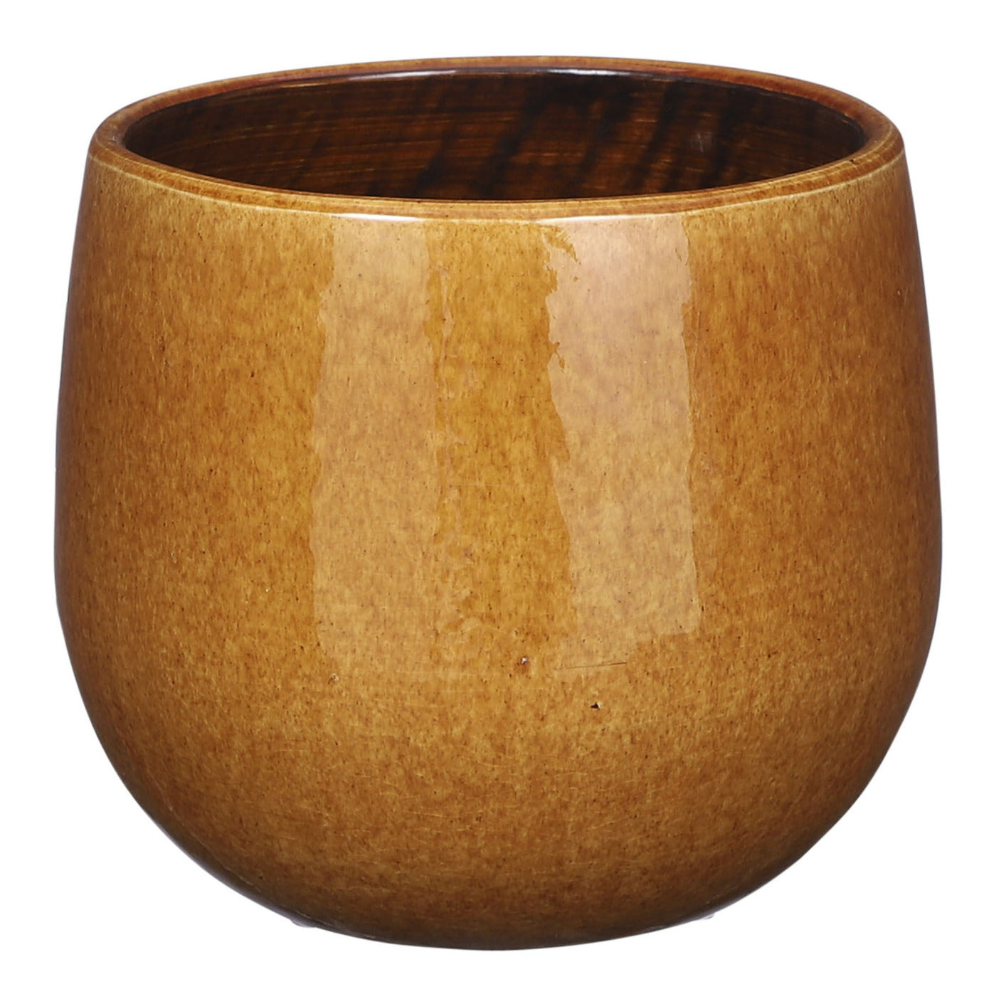 Mica Decorations Plantenpot - keramiek - geel glans - D16|H14 cm