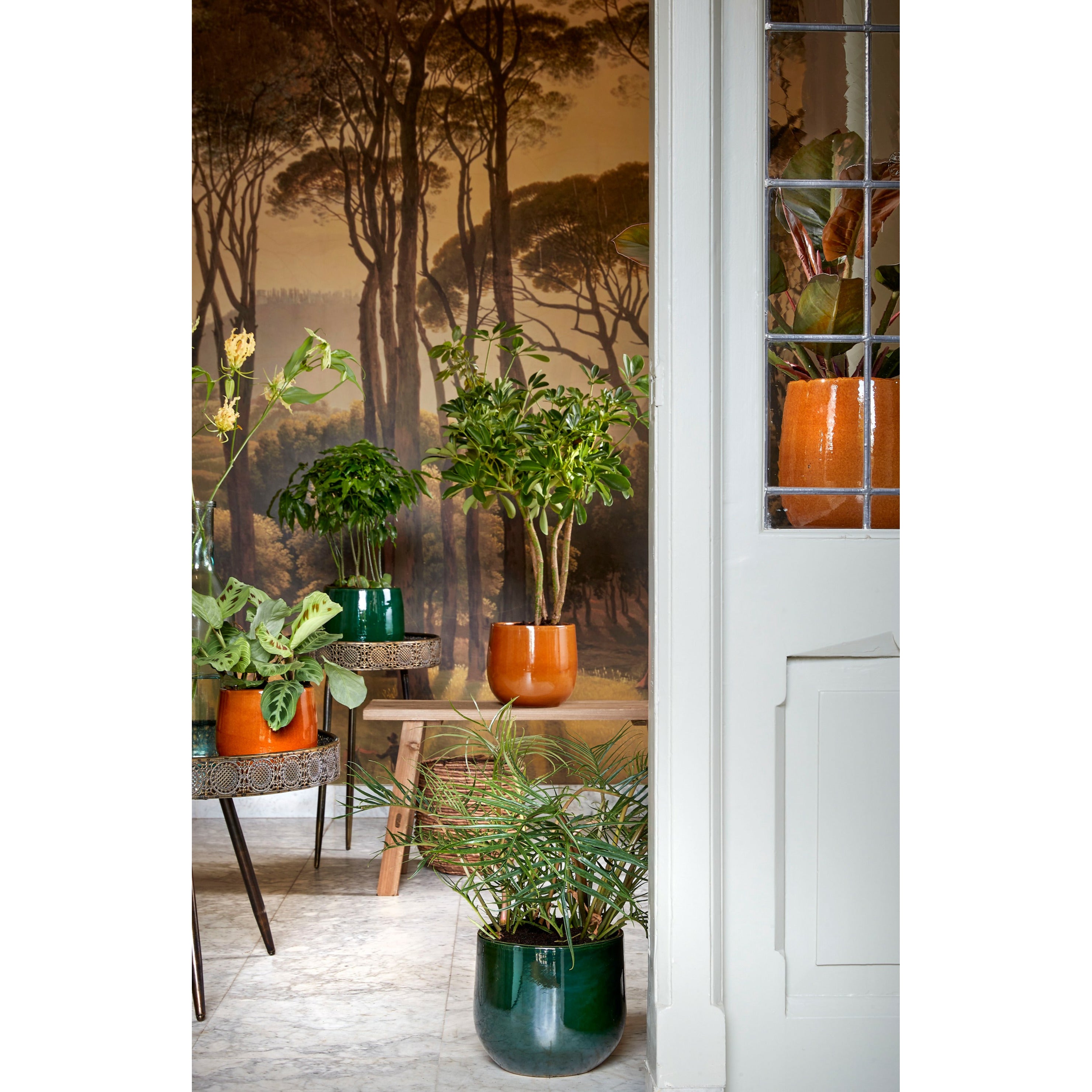 Plantenpot/bloempot van keramiek in de kleur okergeel met een speels licht gevlekt glans patroon. Diameter 16 cm en hoogte 14 cm. Stijlvolle bloempotten voor binnen gebruik. Serie: Pablo. De stijlvolle pot met een prachtige finish aan de buitenzijde is met de hand gemaakt in Portugal. Derhalve is geen pot exact hetzelfde en hebben de bloempotten een echt karakter. Materiaal: Keramiek. Tip: zet een schotel onder de pot om eventueel lekken tegen te gaan. Potten van steen zijn niet 100% waterdicht.