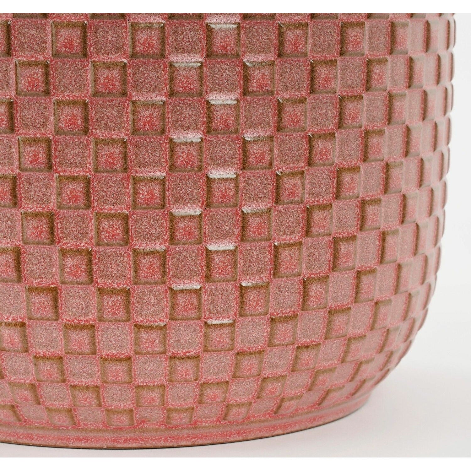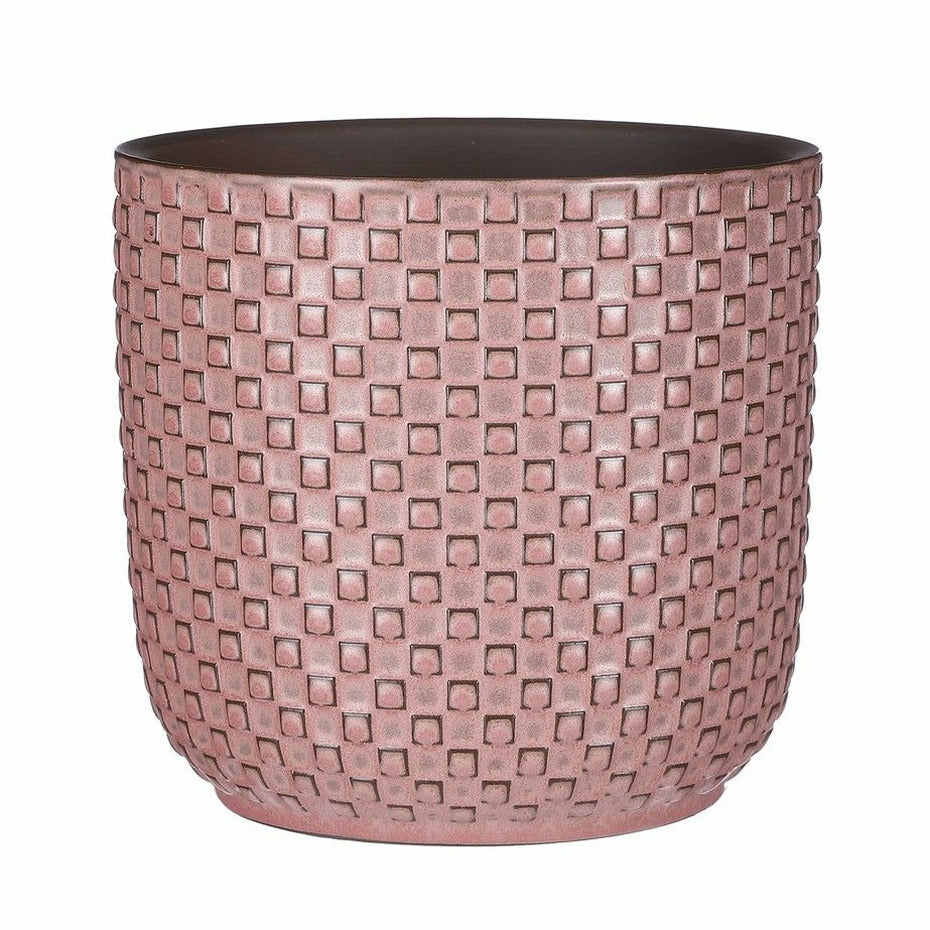 Plantenpot/bloempot van keramiek in de kleur roze met een mooi patroon. Deze roze keramieken bloempot van Mica Decorations is een echte blikvanger. Het stijlvolle patroon geeft ‘m een speelse, maar chique uitstraling, waardoor hij in elk interieur tot zijn recht komt. Of je ‘m nu vult met een groene kamerplant of een kleurrijke bloem, deze pot laat je plant stralen. Zet ‘m op tafel, een dressoir of combineer ‘m met andere potten voor een sfeervol geheel! Een sierlijke thuisbasis voor jouw favoriete planten! Serie: Daan. Het vierkantjes patroon aan de buitenzijde van de pot geeft het geheel een modieus fraai stijlvol uiterlijk. Handgemaakt keramiek. Diameter 17 cm en hoogte 16 cm.