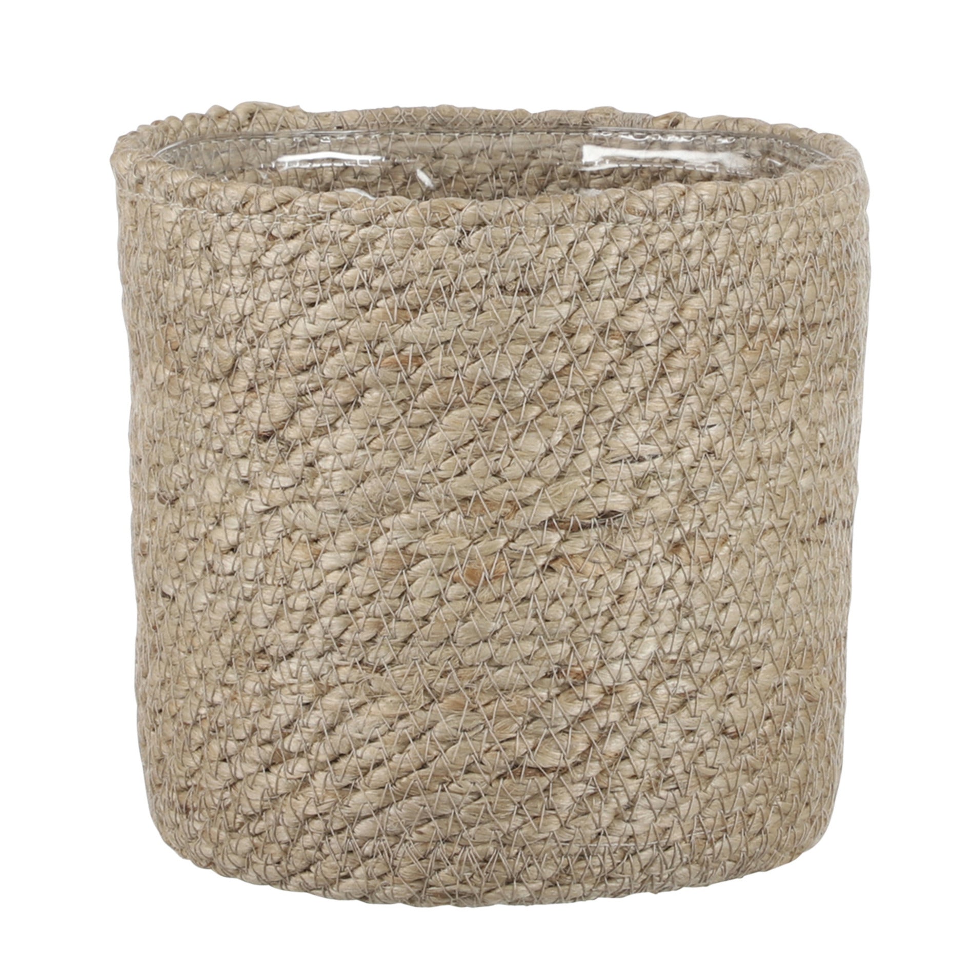 Naturel kleur rotan planten pot mand van gedraaid jute/touw iet van 16 cm hoogte en 16 cm diameter(buitenzijde). Voor de binnenmaat trek je 3 cm af. Mooie rotan jute manden/mandjes voor bloemen, bloemstukjes en planten met plastic aan de binnenkant zodat het water er niet door gaat. De ronde rieten mand heeft geen gaatjes aan de onderkant.