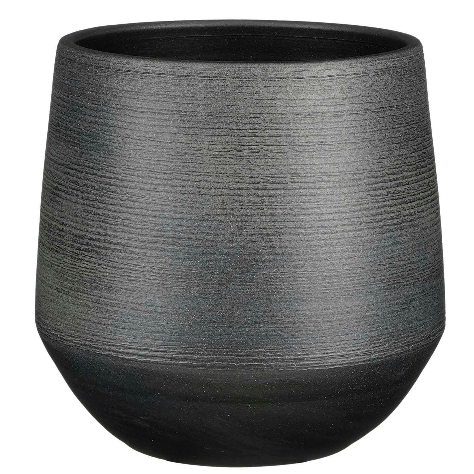 Plantenpot/bloempot van keramiek in de kleur zwart relief patroon. Stijlvolle bloempotten voor binnen gebruik. Serie: Evora. De stijlvolle pot met het prachtige een beetje wazig patroon aan de buitenzijde is met de hand gemaakt in Portugal. Derhalve is geen pot exact hetzelfde en hebben de bloempotten een echt karakter. Materiaal: Terracotta. Tip: zet een schotel onder de pot om eventueel lekken tegen te gaan. Potten van steen zijn niet 100% waterdicht. Afmeting: D24 x H23.