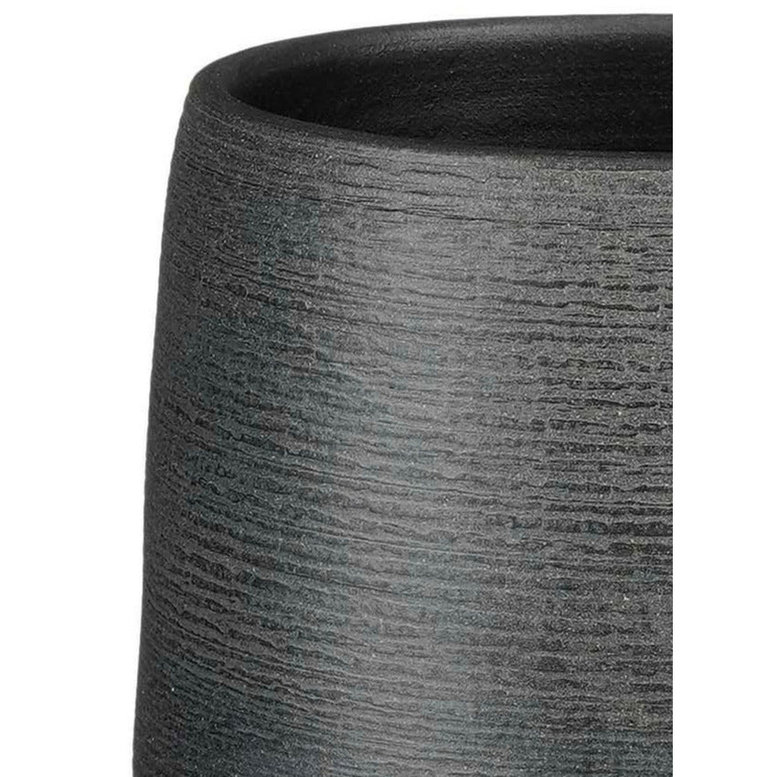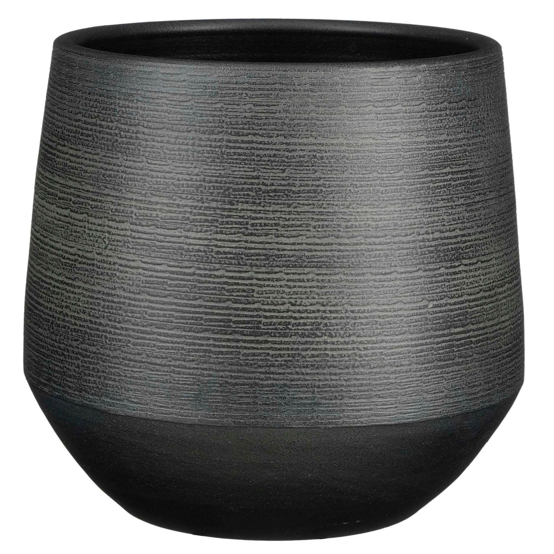 Plantenpot/bloempot van keramiek in de kleur zwart relief patroon. Diameter 30 cm en hoogte 28 cm. Stijlvolle bloempotten voor binnen gebruik. Serie: Evora. De stijlvolle pot met het prachtige een beetje wazig patroon aan de buitenzijde is met de hand gemaakt in Portugal. Derhalve is geen pot exact hetzelfde en hebben de bloempotten een echt karakter. Materiaal: Terracotta. Tip: zet een schotel onder de pot om eventueel lekken tegen te gaan. Potten van steen zijn niet 100% waterdicht.