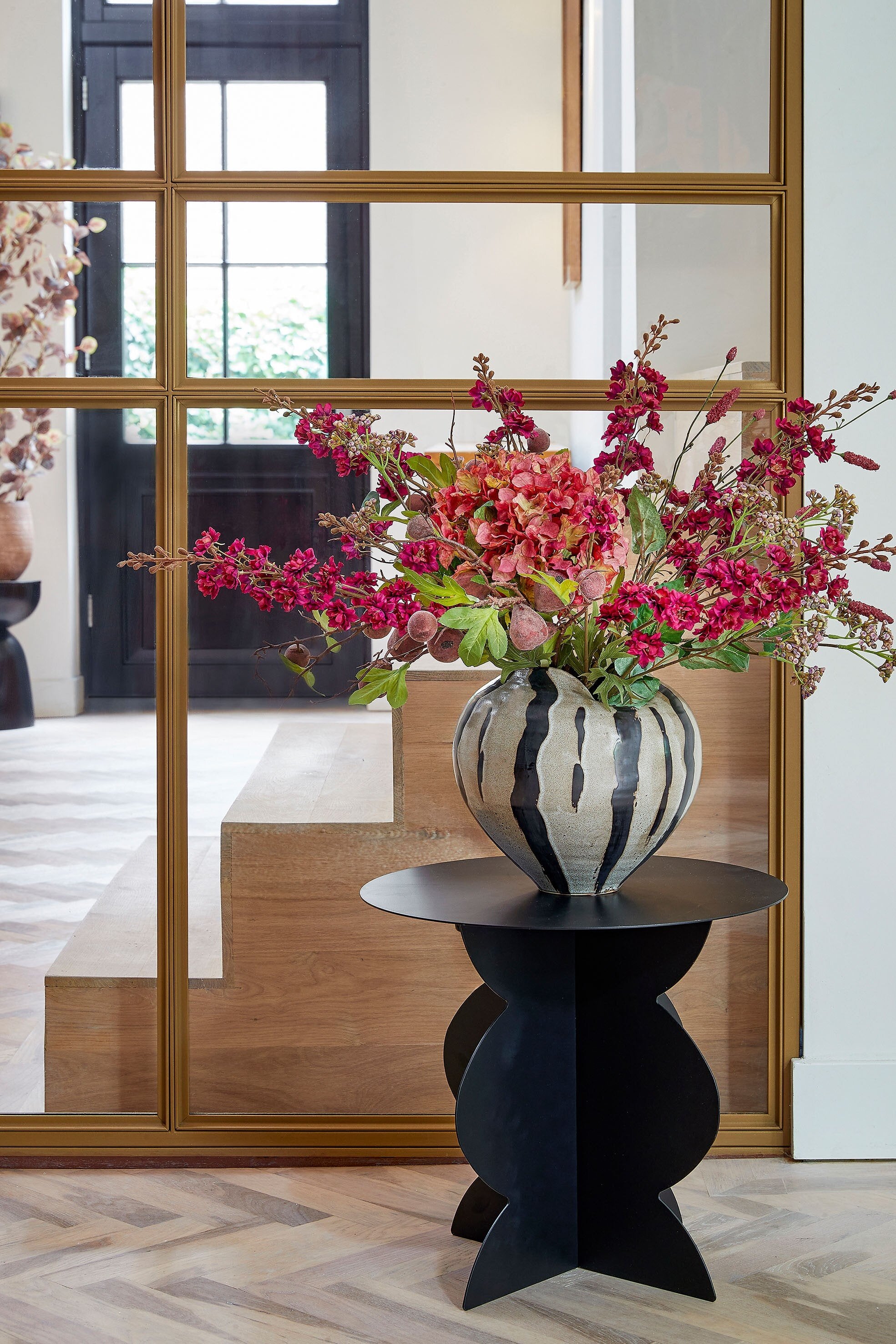De Rafi bijzettafel van Mica Decorations is speels, stoer en verrassend veelzijdig. Deze ronde bijzettafel is gemaakt van stevig ijzer en afgewerkt in tijdloos zwart, wat zorgt voor een moderne, industriële uitstraling. Ideaal naast de bank, in een leeshoek of als stevig platform voor je favoriete accessoires of planten. Met zijn compacte formaat, 40 cm hoog en 45 cm in diameter, past hij moeiteloos in elke ruimte. De bijzettafel is verkrijgbaar in verschillende kleuren en uitvoeringen, zodat je altijd een stijl vindt die bij jouw interieur past.