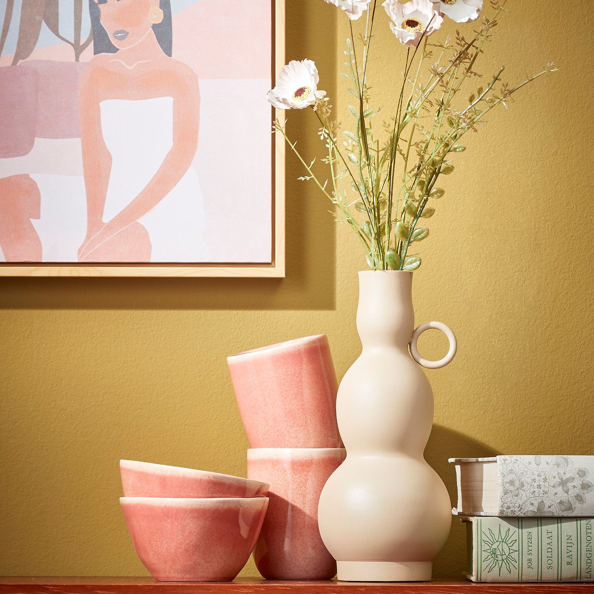 - Prachtig met wat losse bloemen, pluimen of siertakken