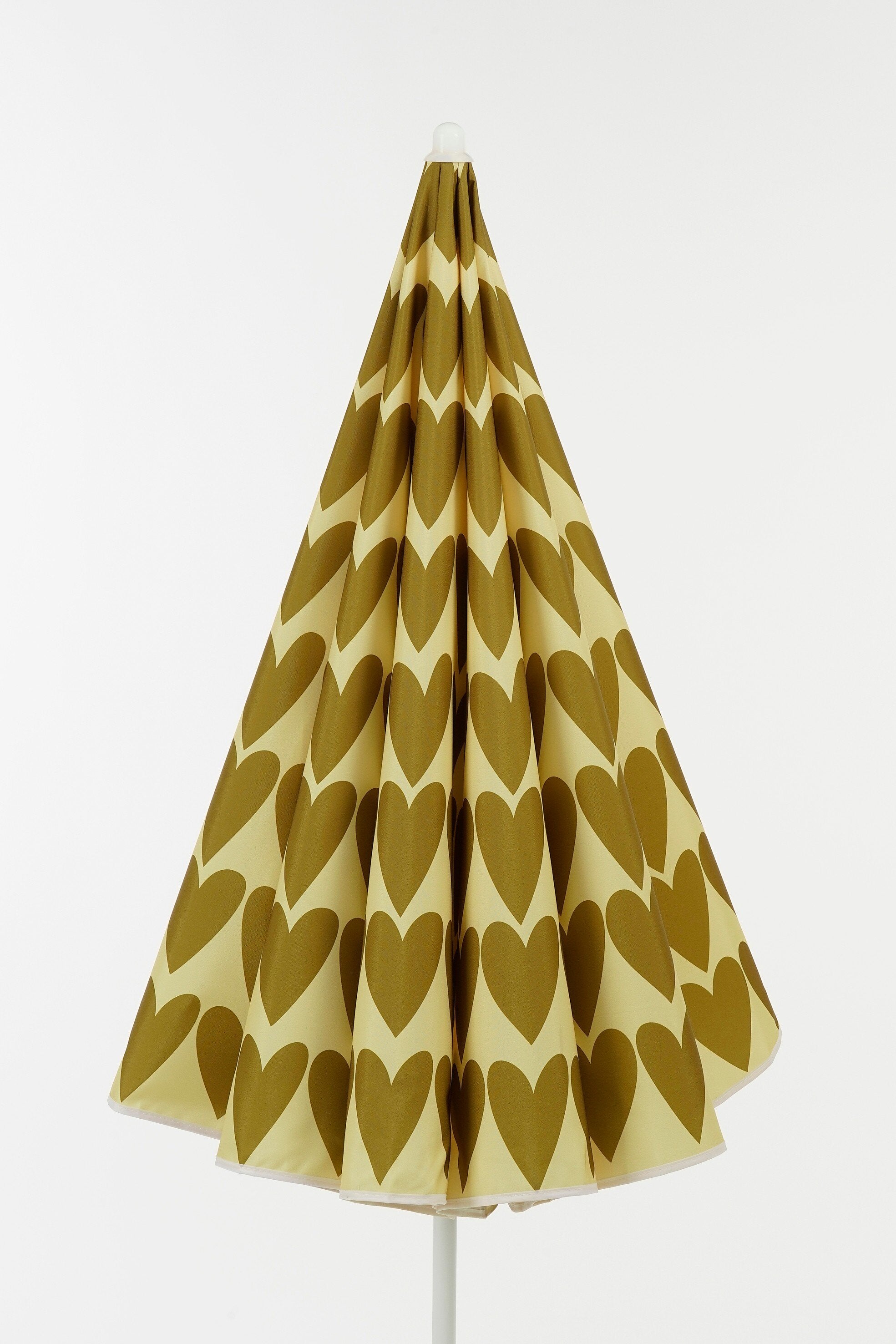 - Warme bruintinten en een hartjesprint geven de parasol een speels retro accent