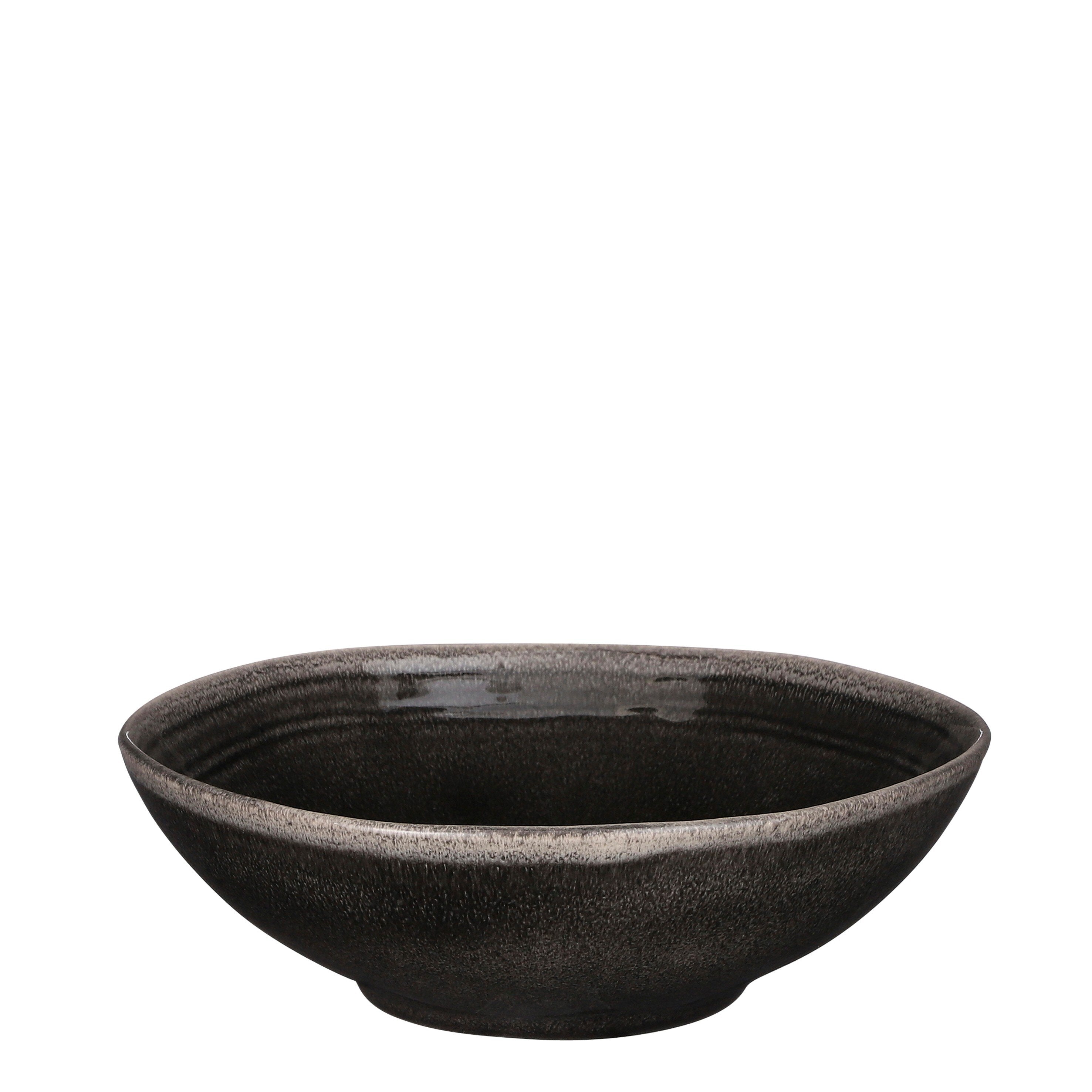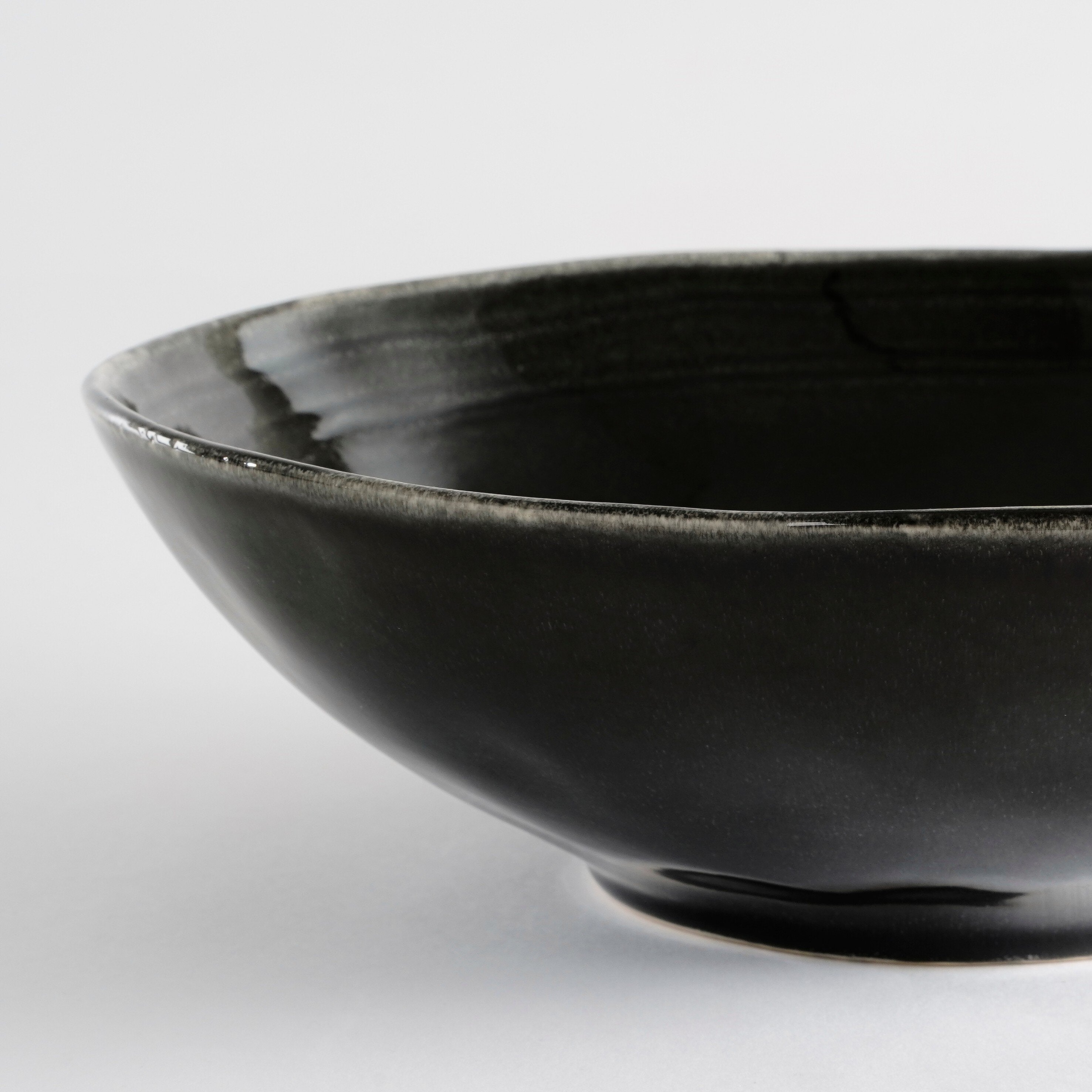 Handgemaakte schaal van keramiek in een moderne, zwarte kleur. Het diepe bord heeft een afmeting van H7,5 x Ø23,5 cm.