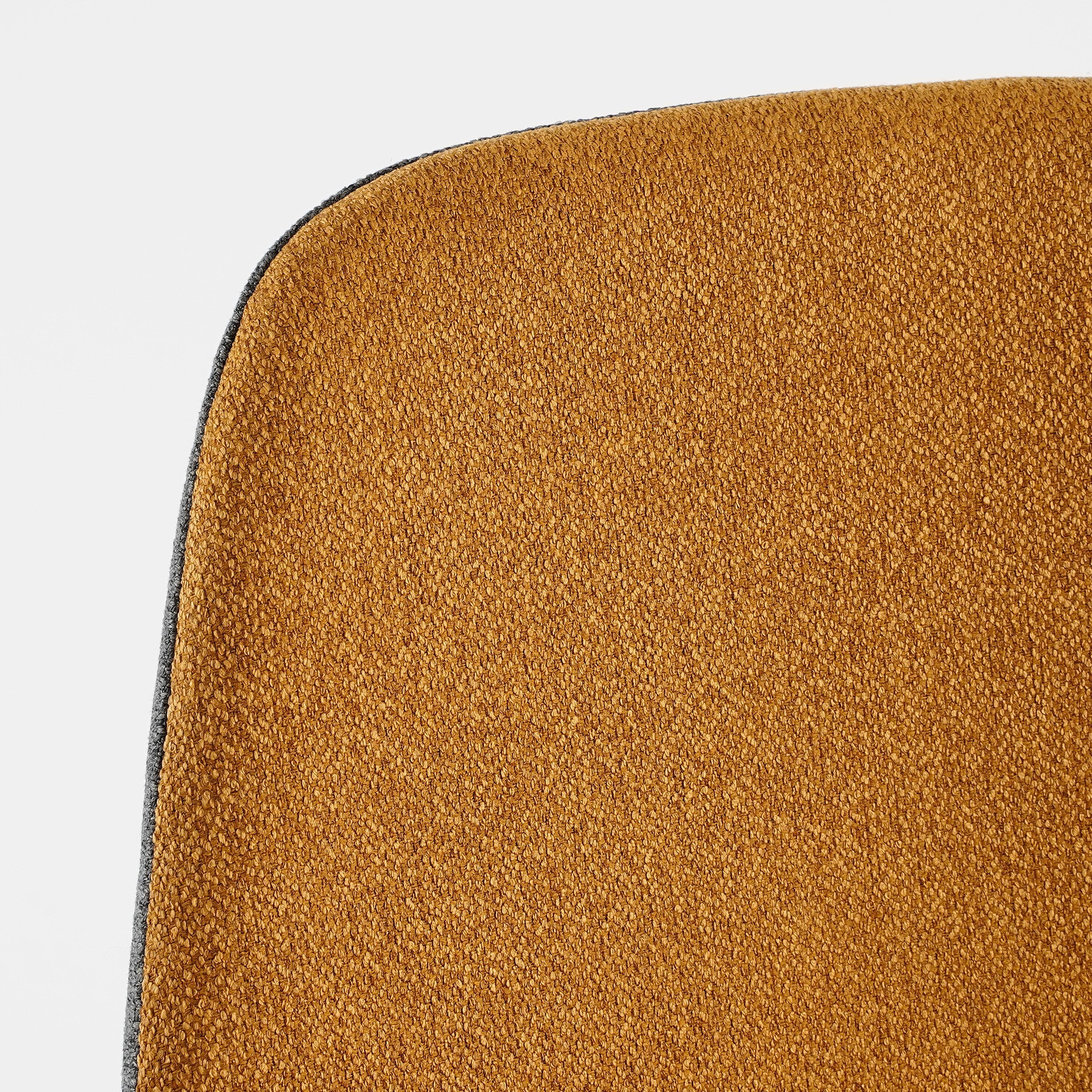 - Kleurencombinatie: oker kleurige zitting, donkergrijze kleur aan de achterkant