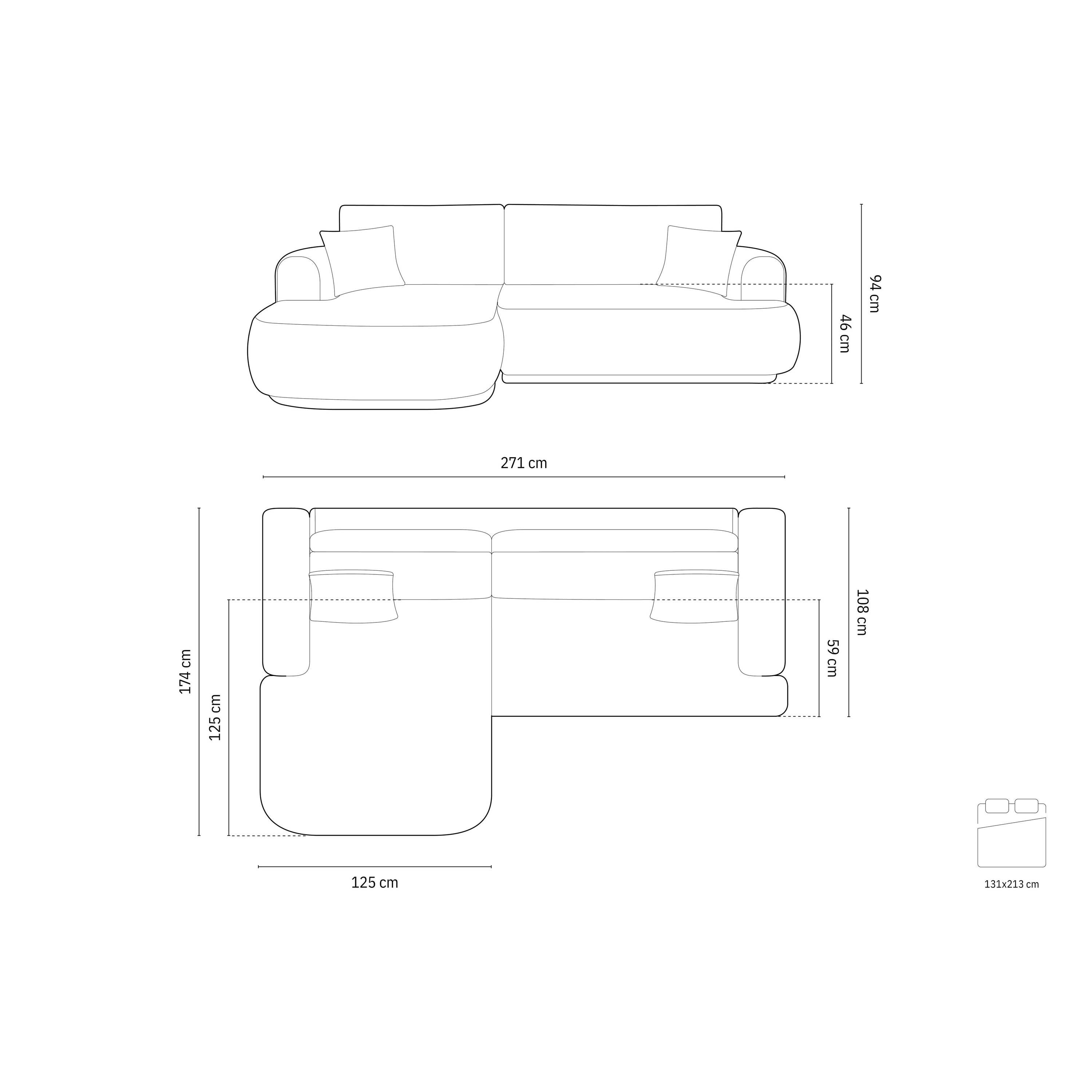 Micadoni Hoekslaapbank links met opbergvak Ella velvet