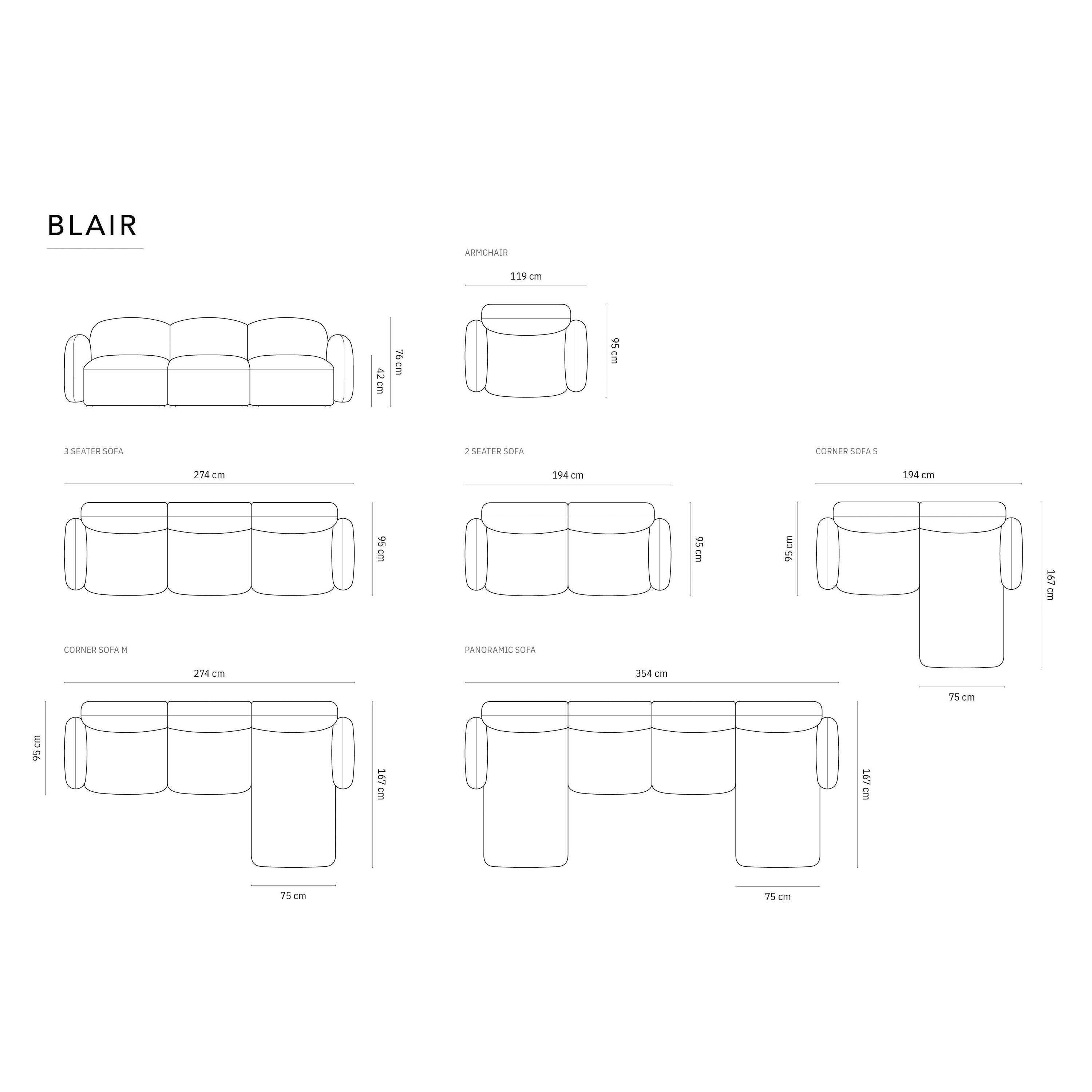 Upgrade je woonkamer met de hoekbank Blair, bekleed met chenille stof die een verbluffend 3D effect heeft en elke kamer boeiender maakt. De zijdezachte, bijna iriserende textuur voelt luxueus aan, terwijl het expressieve weefsel een schaduweffect creëert door ongelijk gekleurde draden. Bovendien is deze hoekbank redelijk compact, waardoor het perfect is voor kleine woonkamers. Dankzij de hoge duurzaamheid en eenvoudige reiniging is de Blair een praktische keuze.