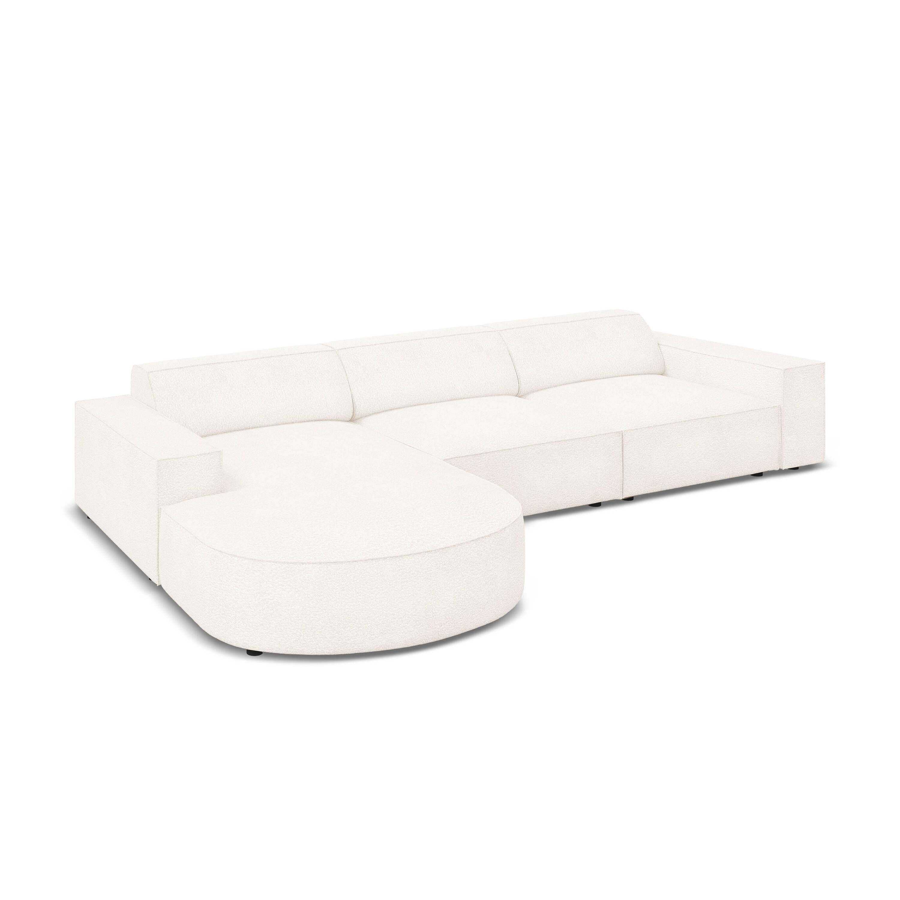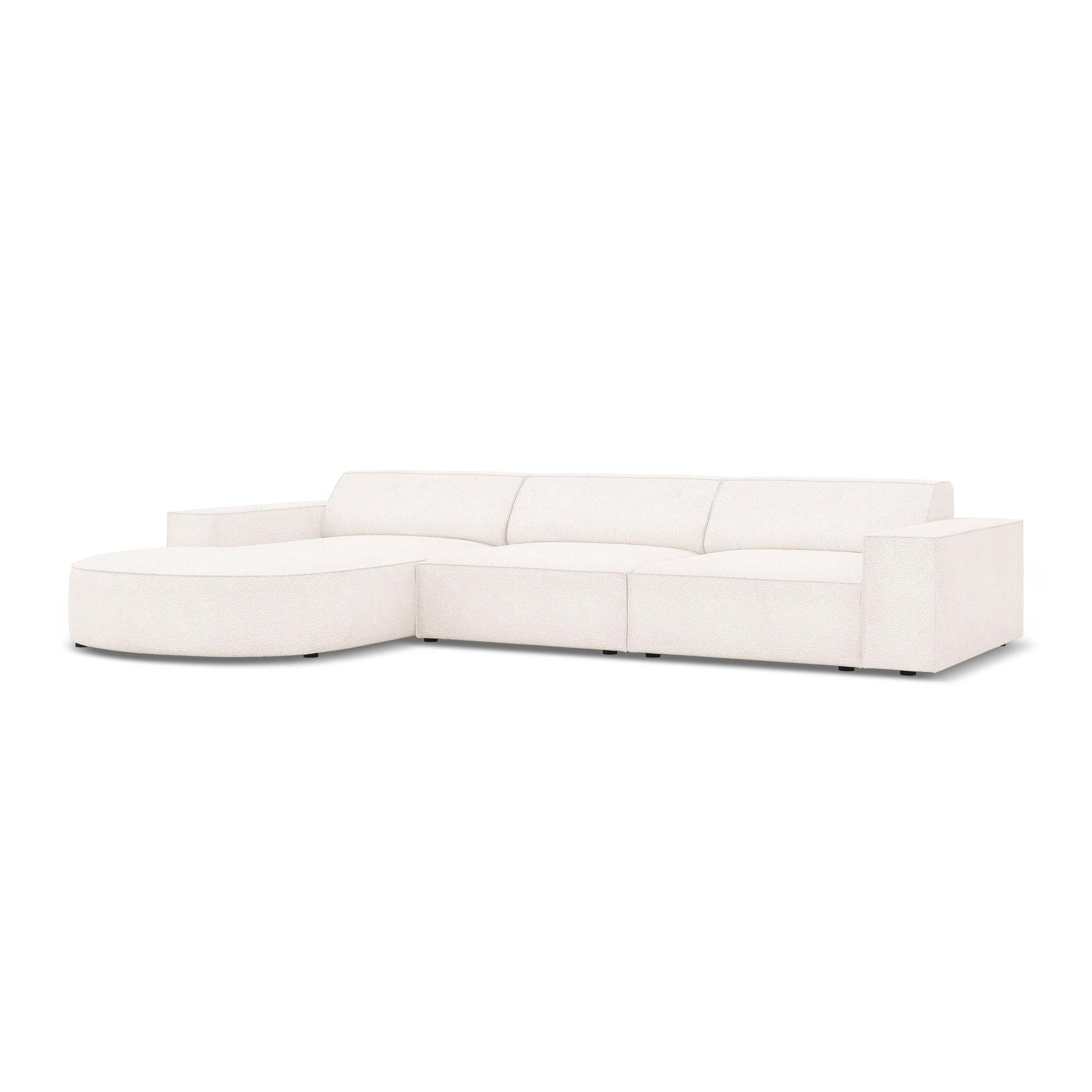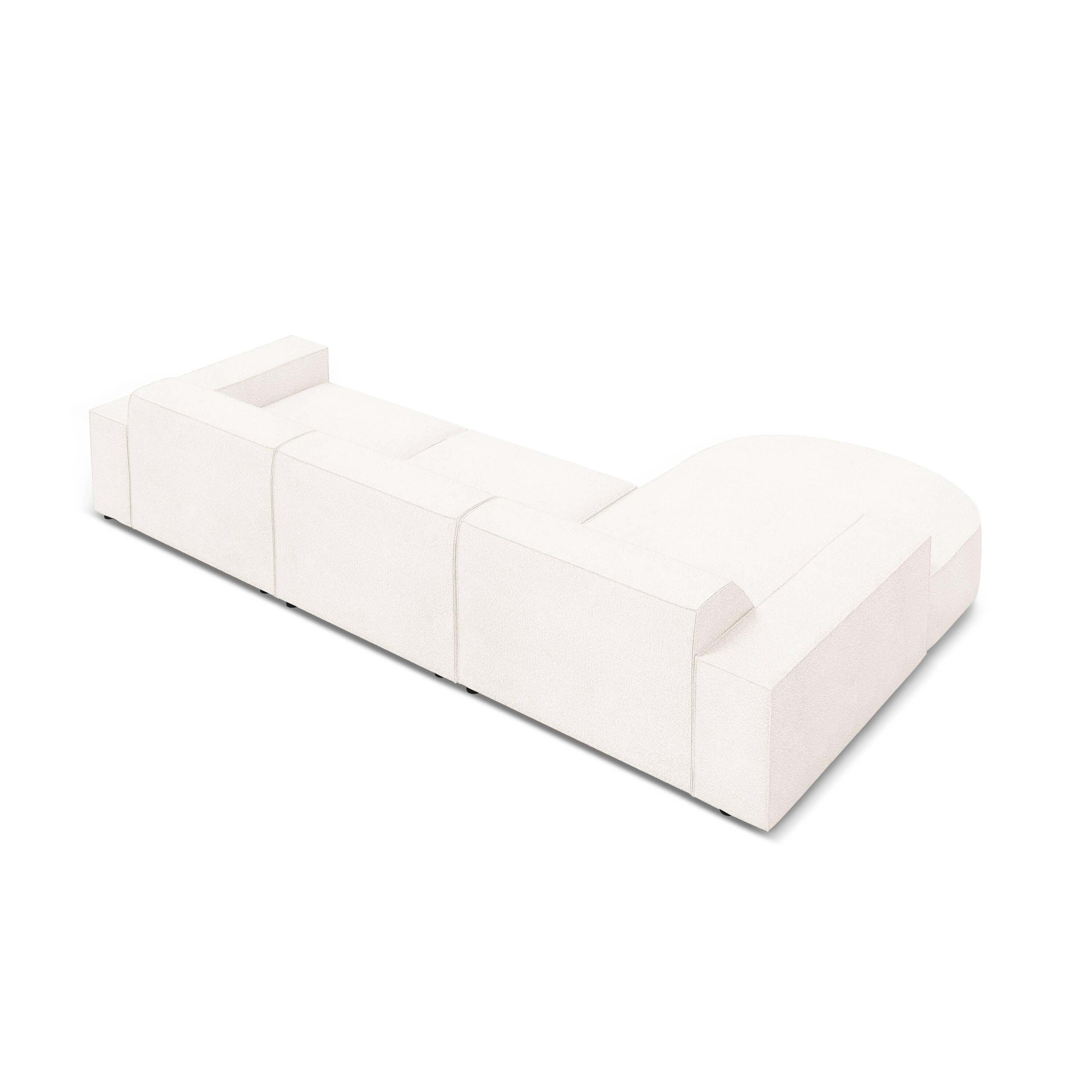 - De bank is bekleed met een dikke gestructureerde bouclé stof met een strakke weving