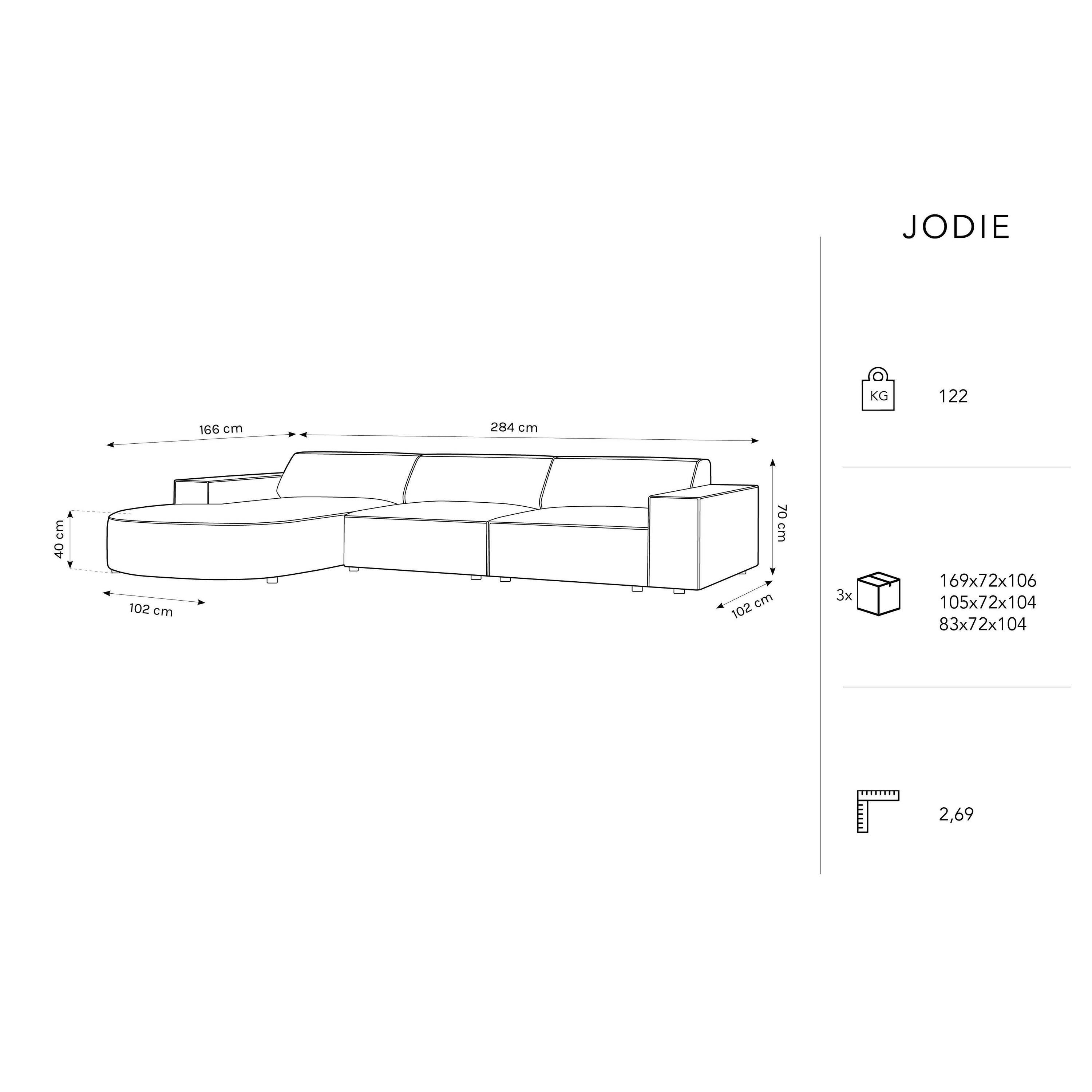 - De moderne hoekbank meet H 70 x B 284 x D 166 cm