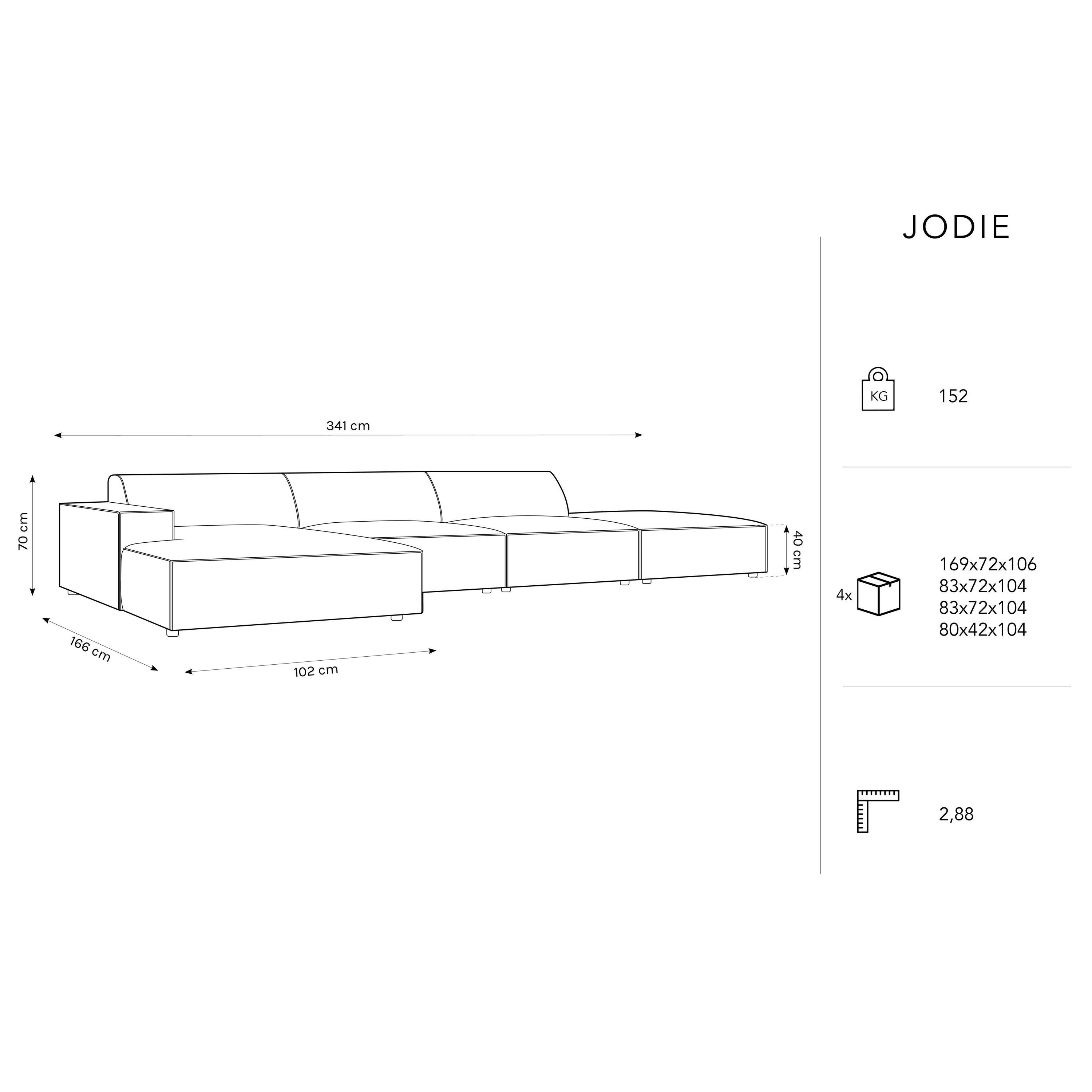 - De moderne hoekbank meet H 70 x B 341 x D 166 cm