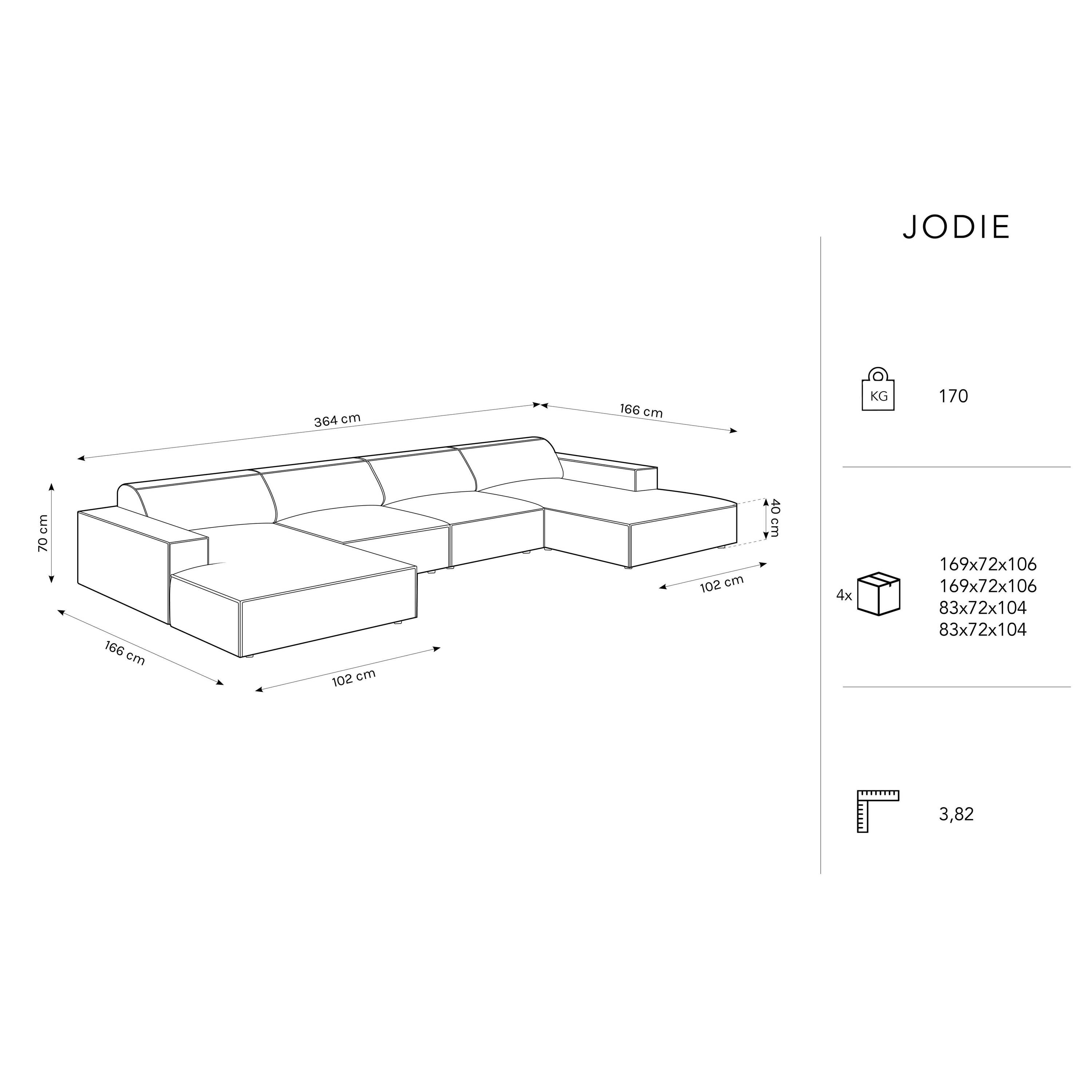 | Maat | breedte 364 cm x diepte 166 cm x hoogte 70 cm |