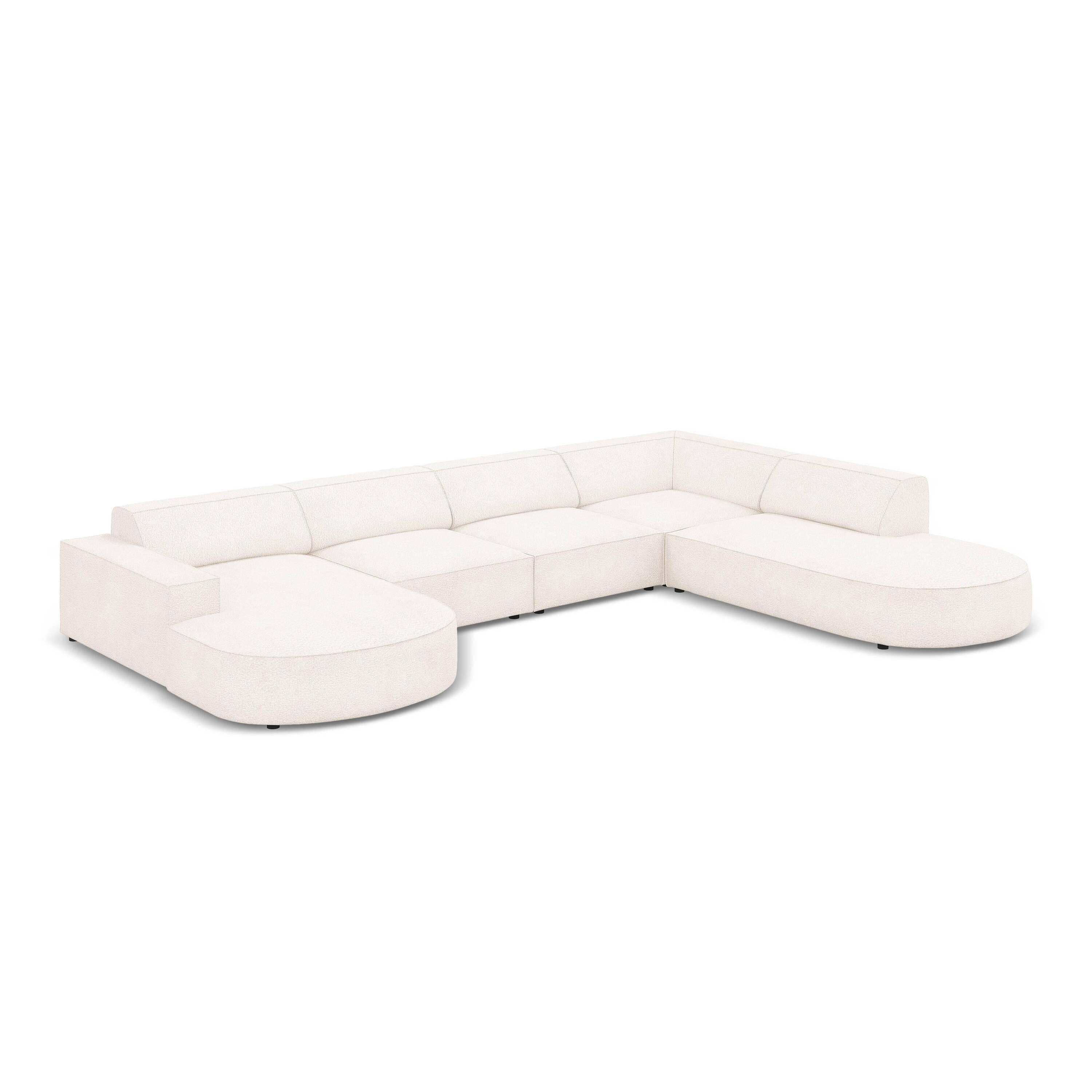 - De bank is bekleed met een dikke gestructureerde bouclé stof met een strakke weving