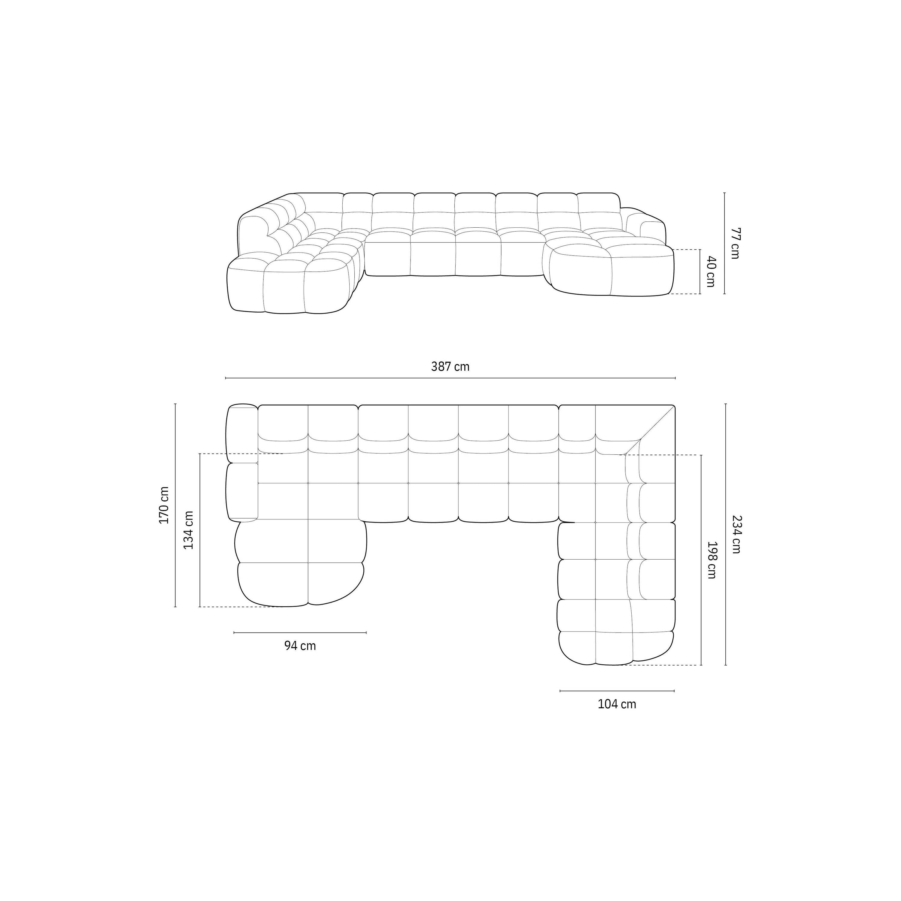 - Royale U-bank van H 79 x B 387 x 234 cm