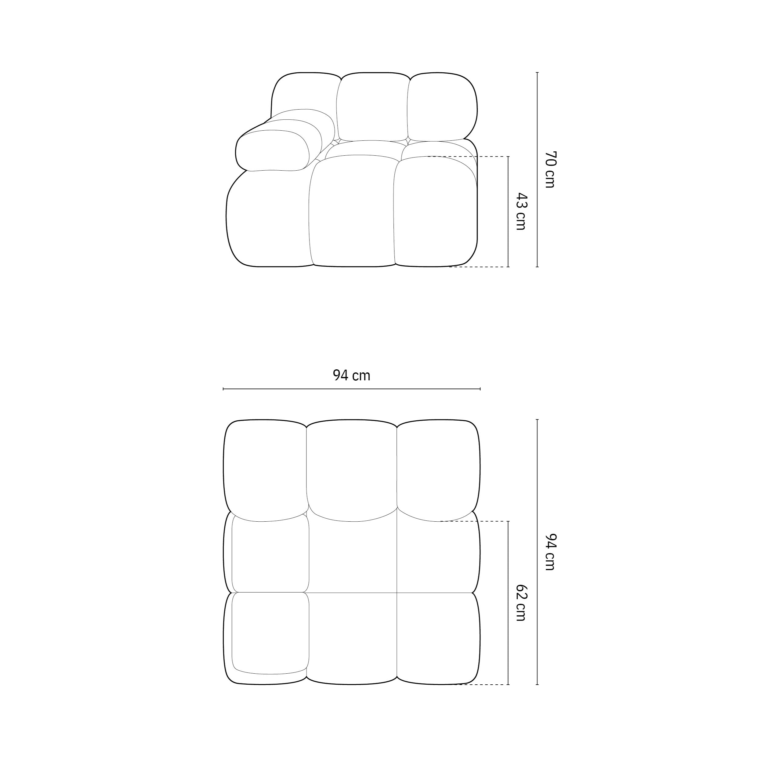 - Stijlvol hoekelement met de afmetingen H 70 x B 94 x D 94 cm