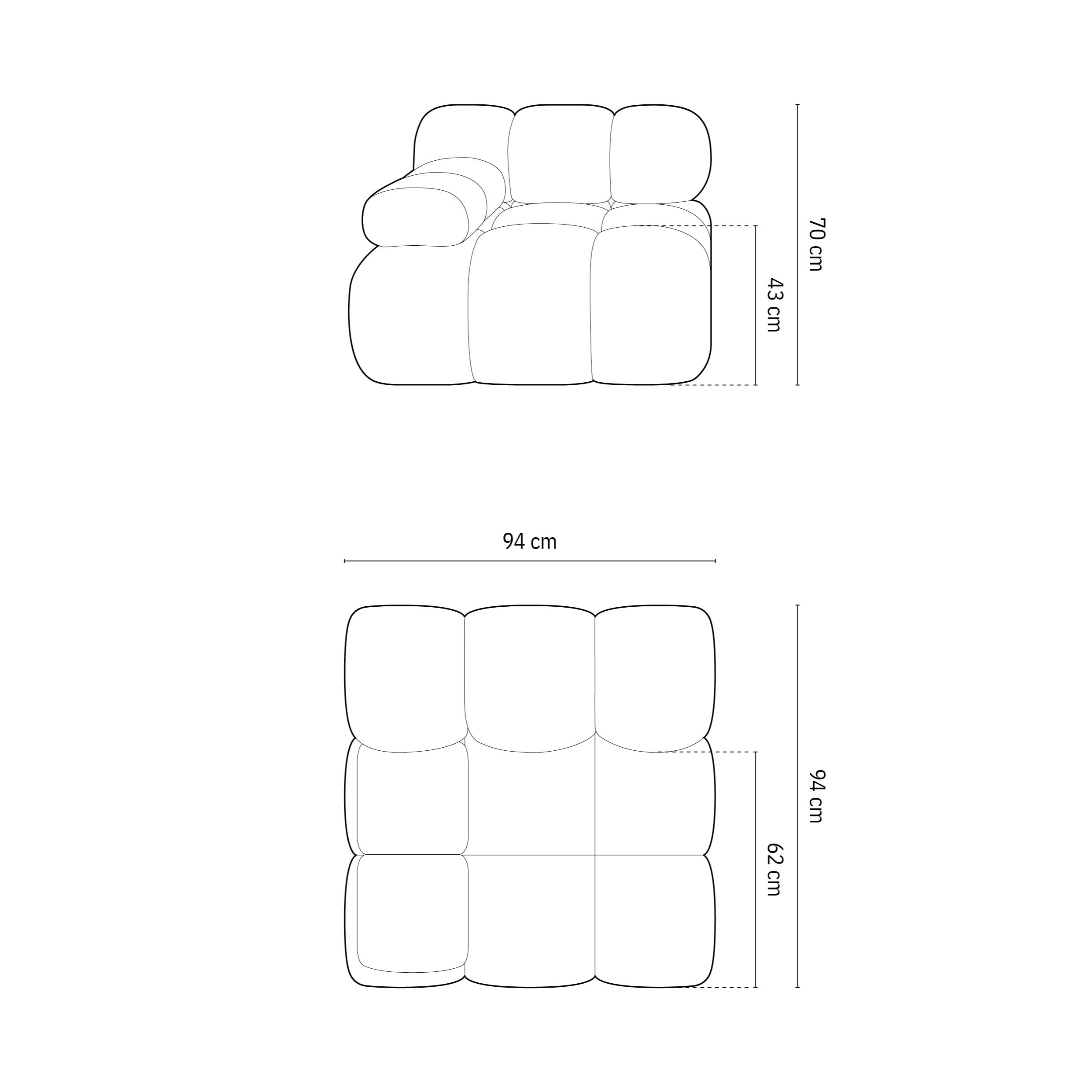 - Stijlvol hoekelement met de afmetingen H 70 x B 94 x D 94 cm