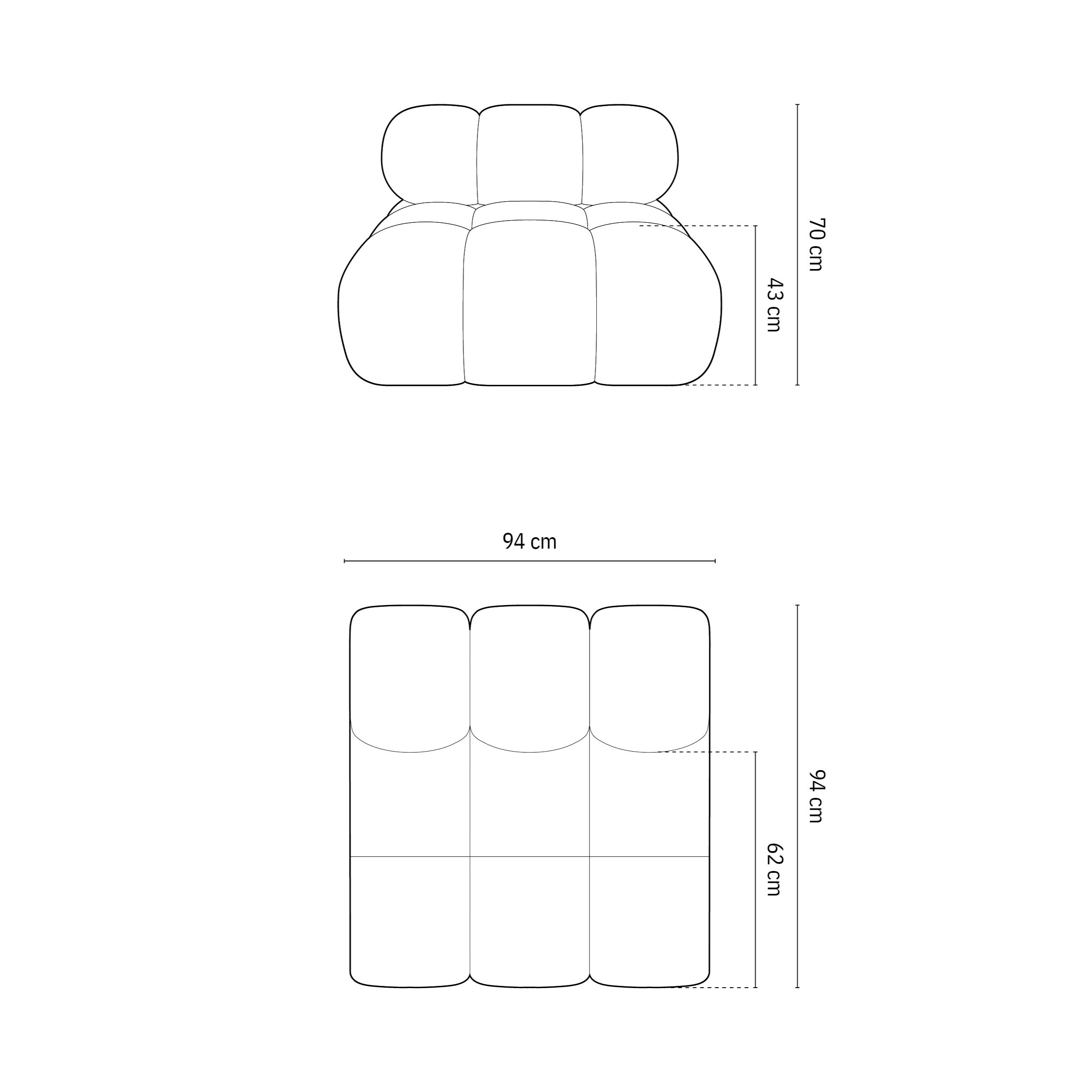 - Modulair middenstuk met de afmetingen H 70 x B 94 x D 94 cm