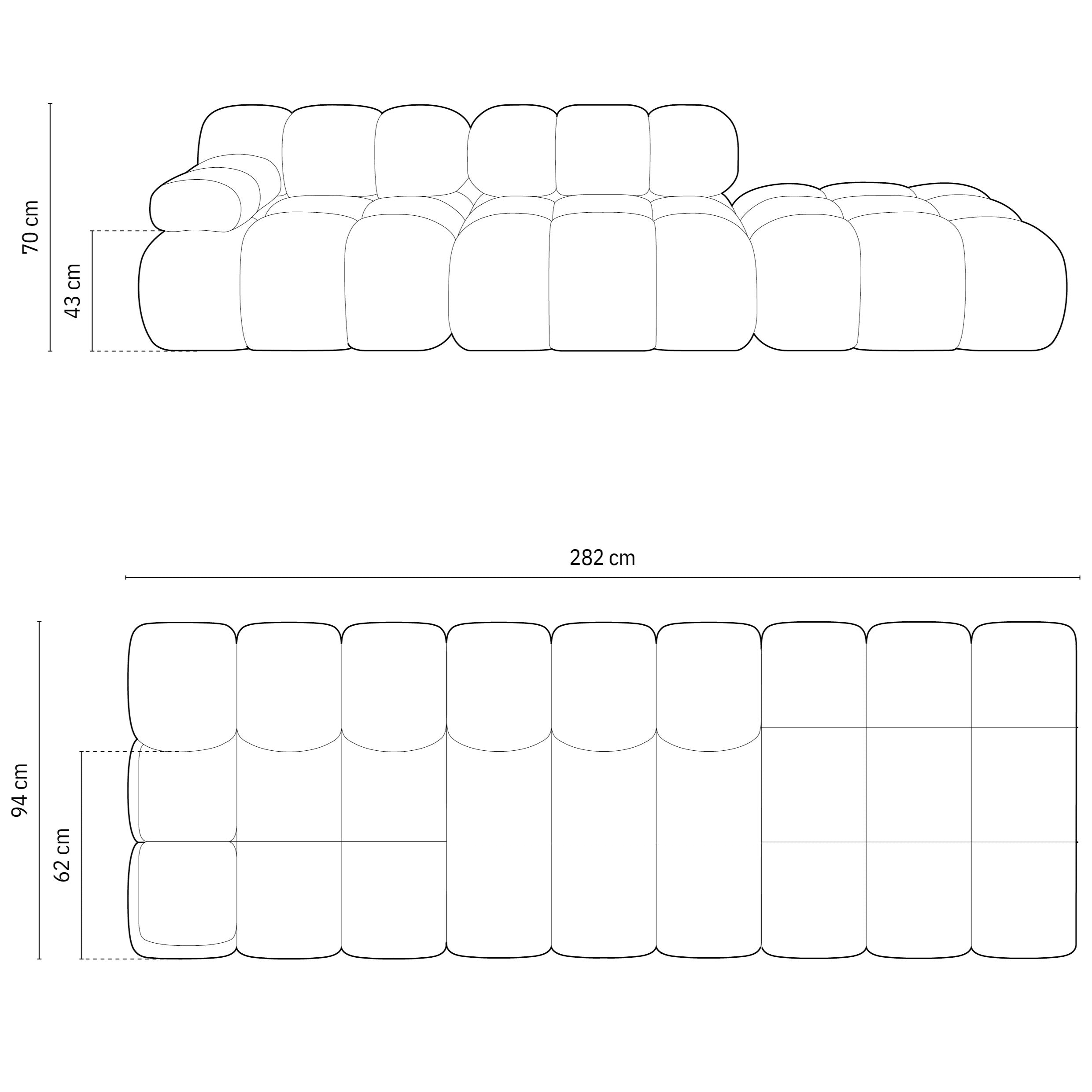 | Maat | breedte 282 cm x diepte 94 cm x hoogte 63 cm |