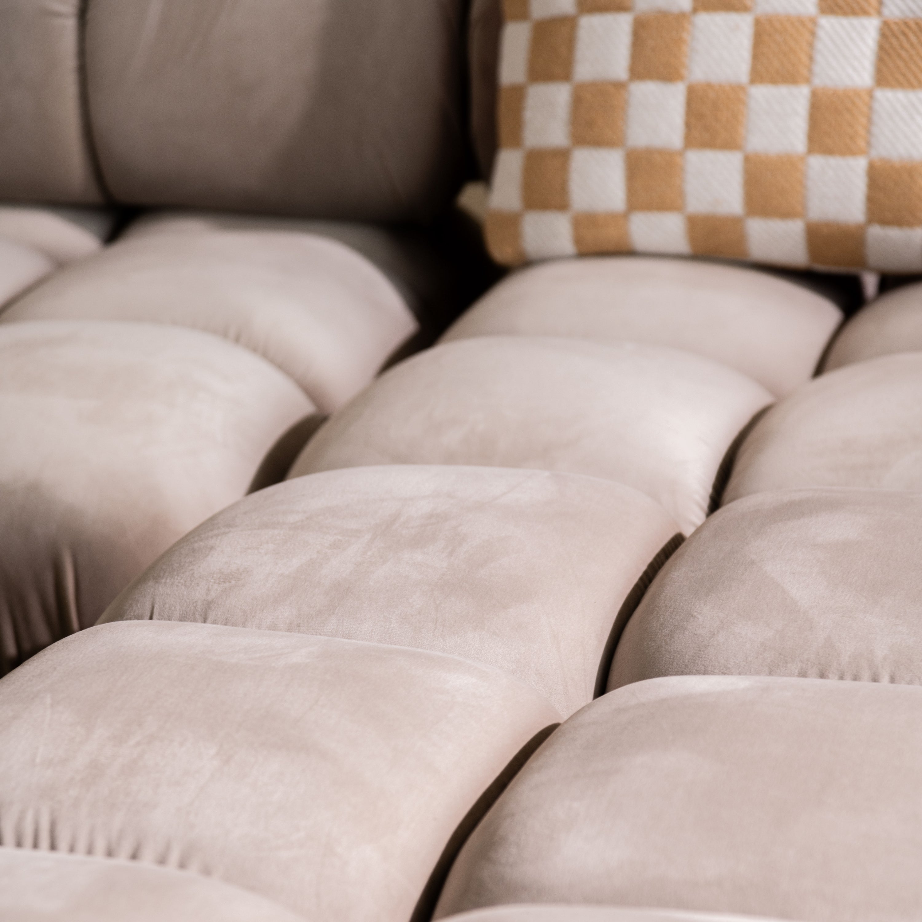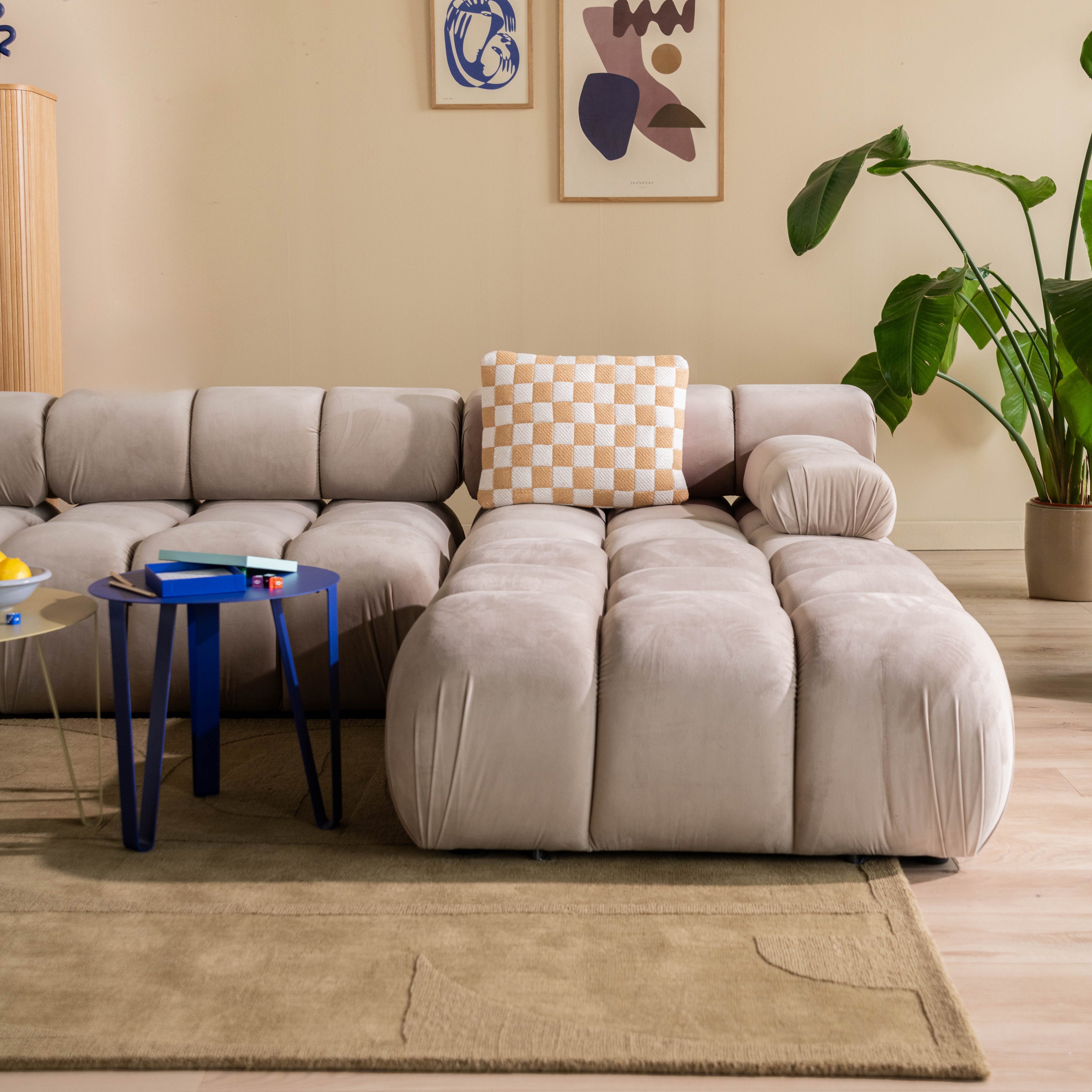 - Modulaire hoekbank met de afmetingen H 70 x B 282 x D 155/94 cm