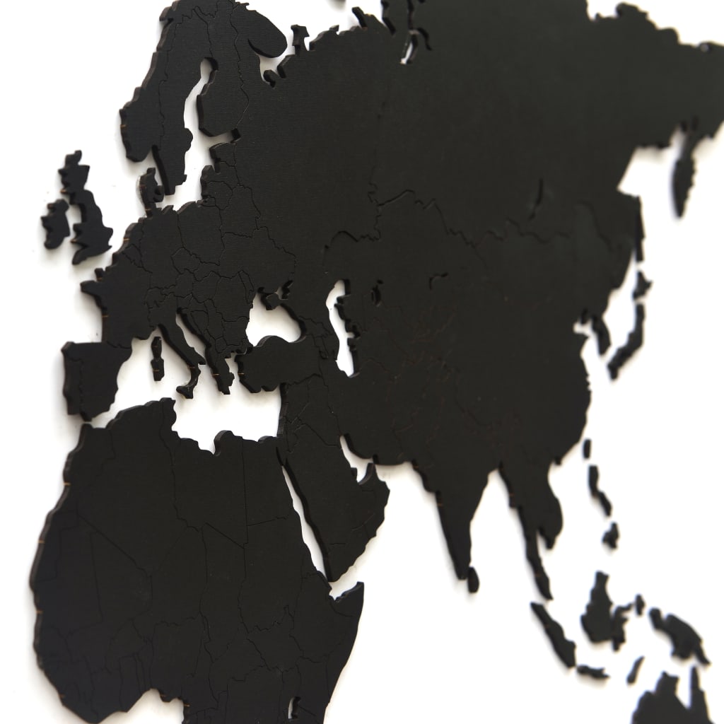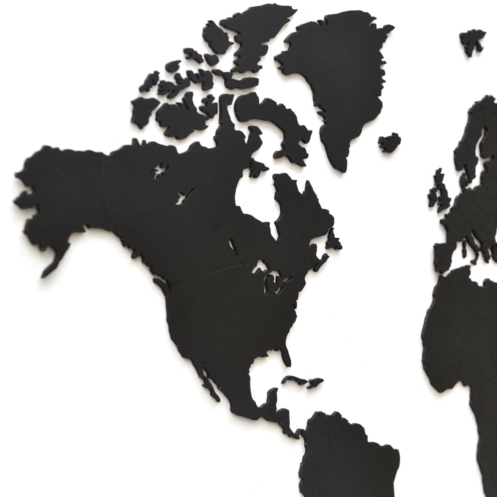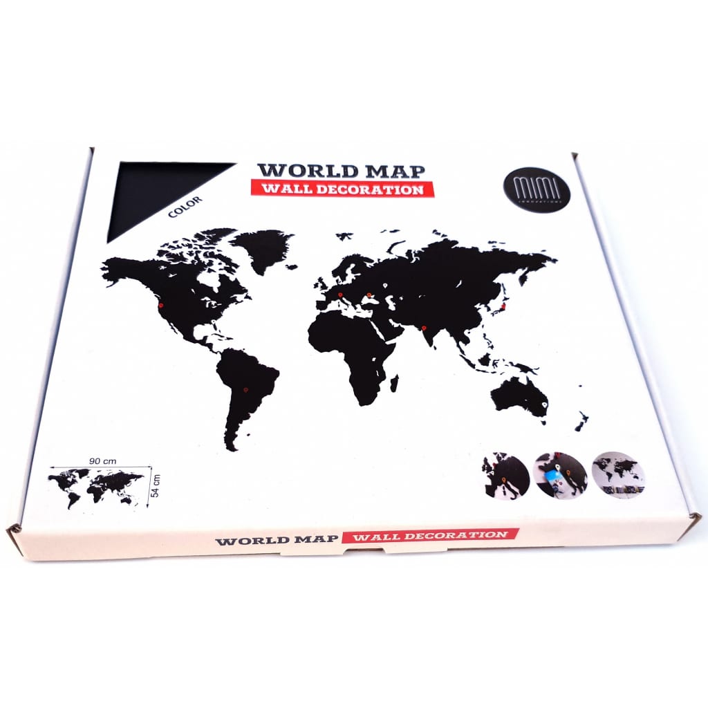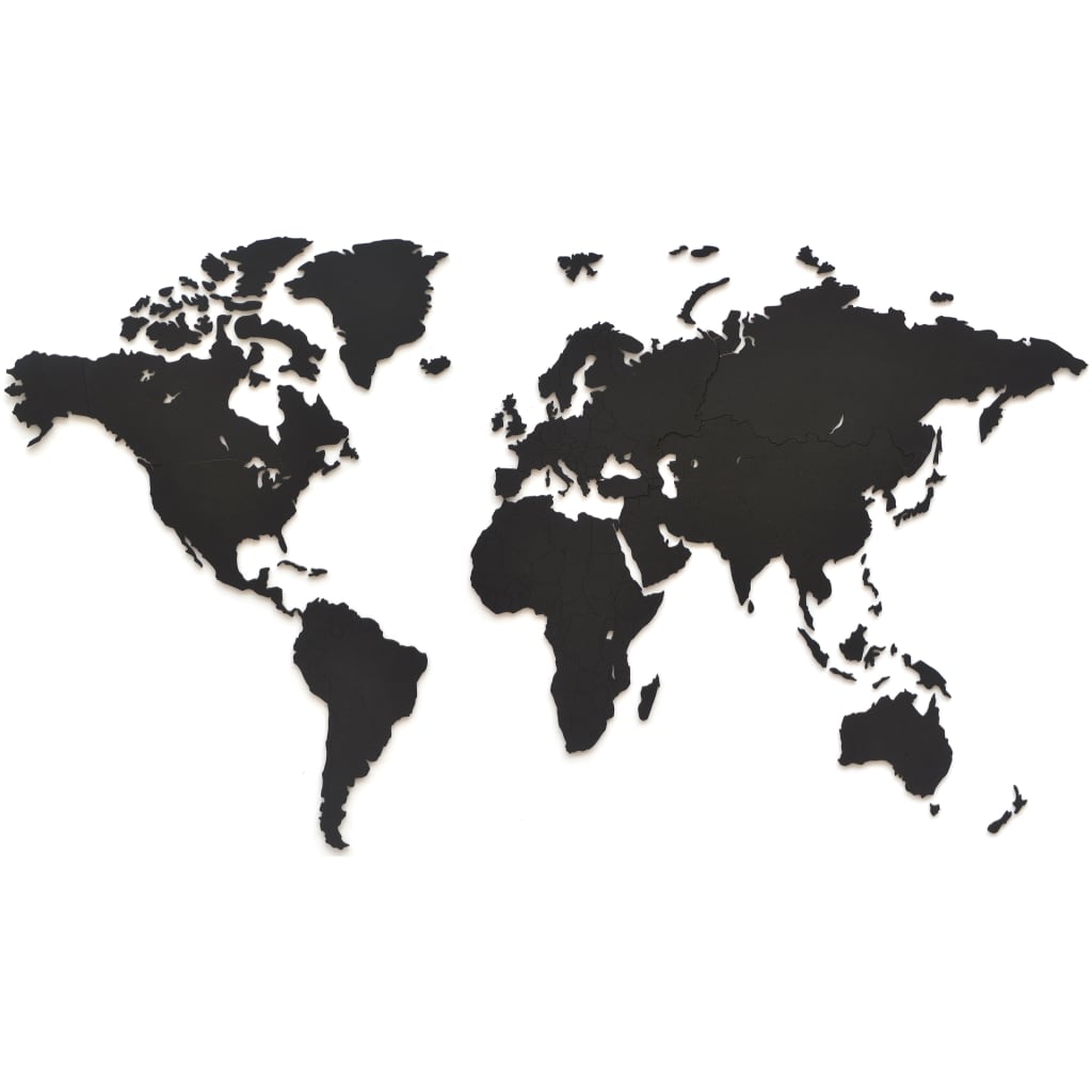 MiMi Innovations Wereldkaart muurdecoratie Luxury 90x54 cm hout zwart