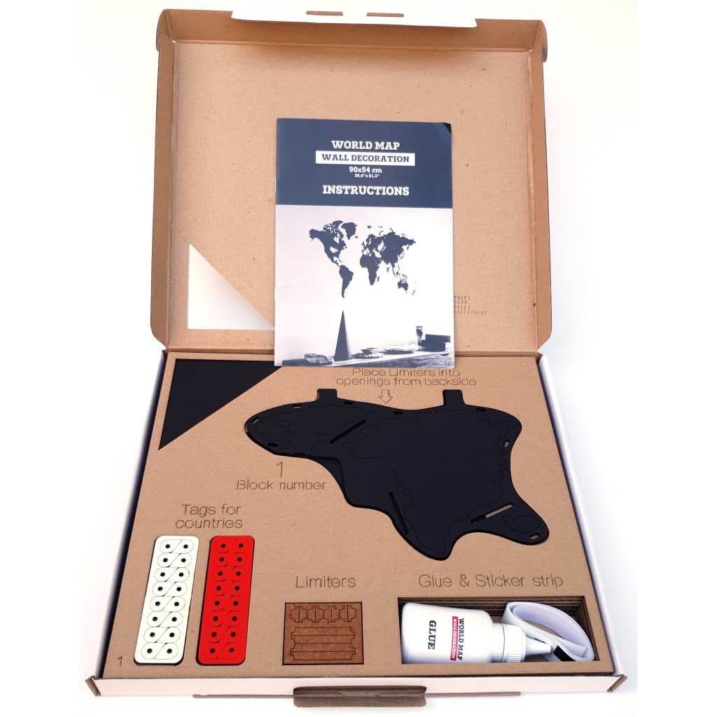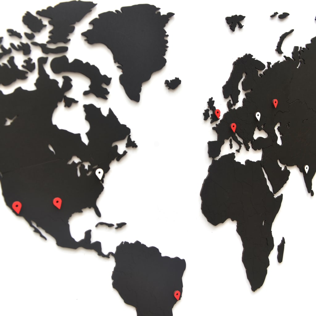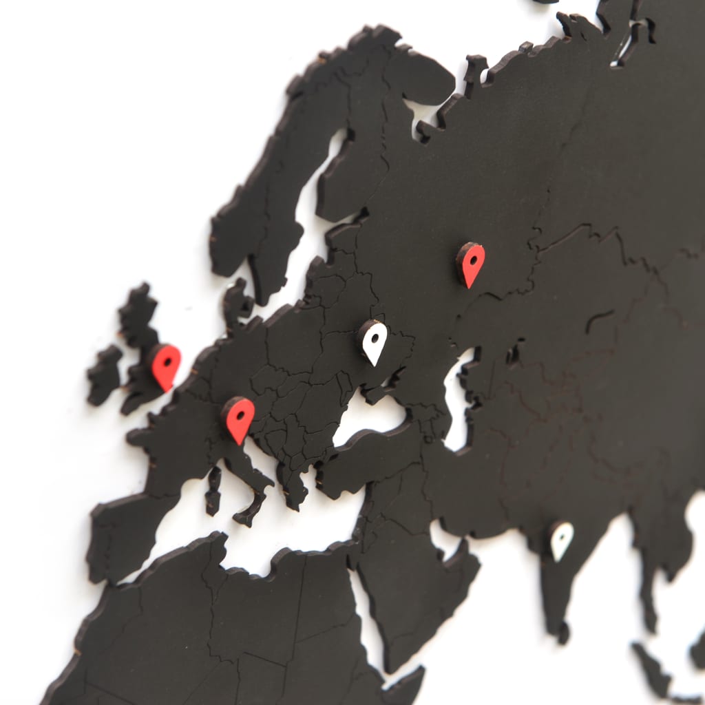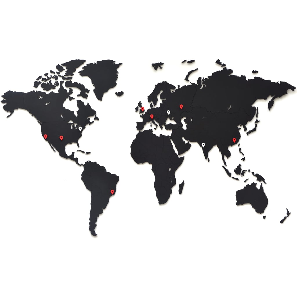 MiMi Innovations Wereldkaart muurdecoratie Luxury 90x54 cm hout zwart