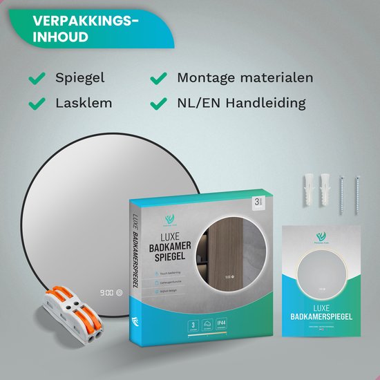 Heb je vaker een spiegel opgehangen? Dan is het monteren van de Mirlux Badkamerspiegel niet veel moeilijker. Het enige wat je nog extra moet doen, is de elektriciteit aansluiten. Dit kan via het stopcontact of rechtstreeks op het lichtnet met de meegeleverde lasklem.