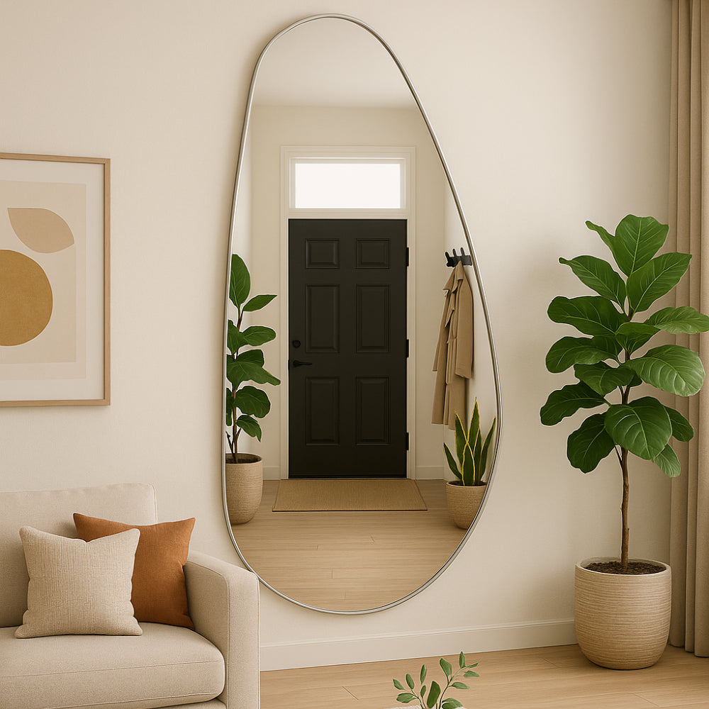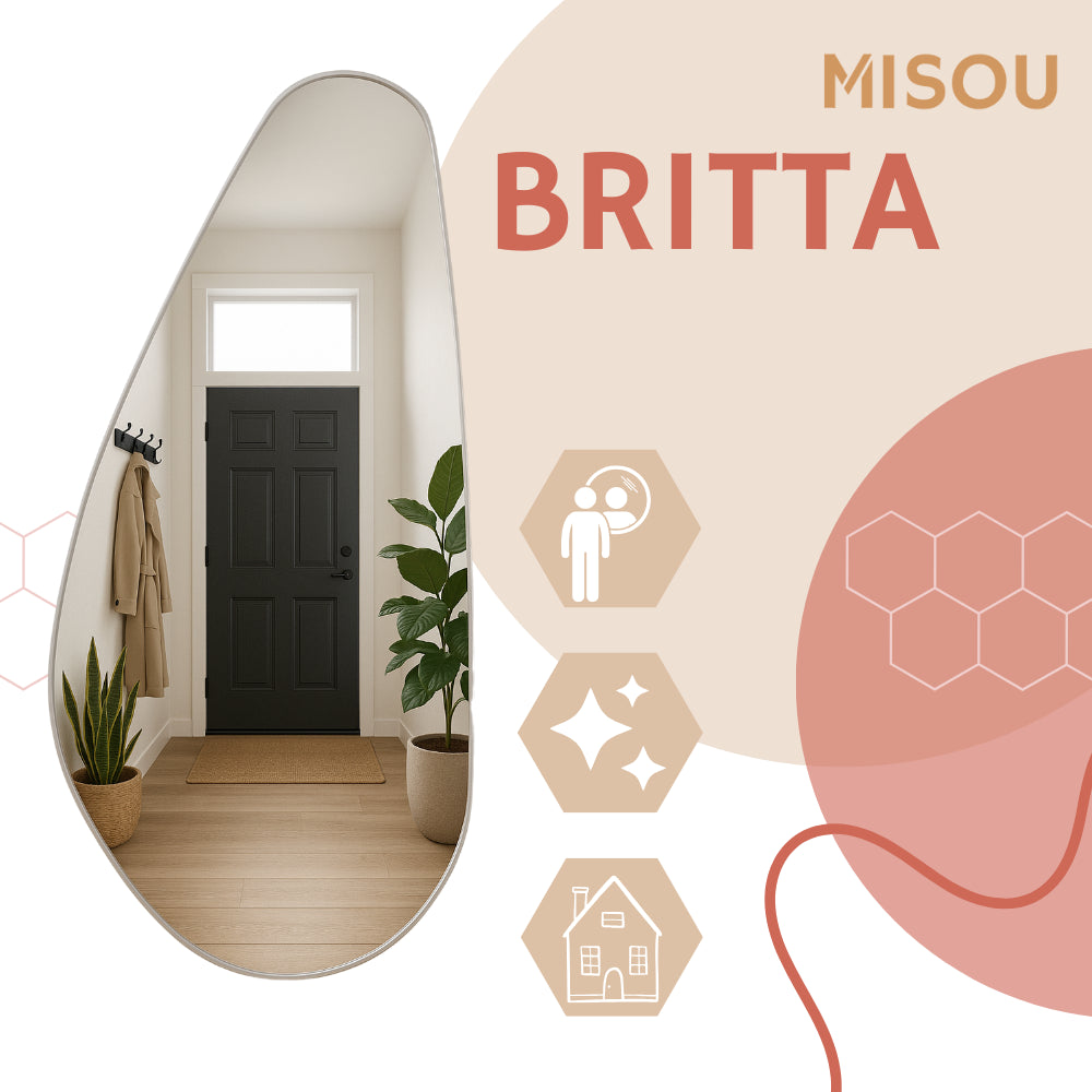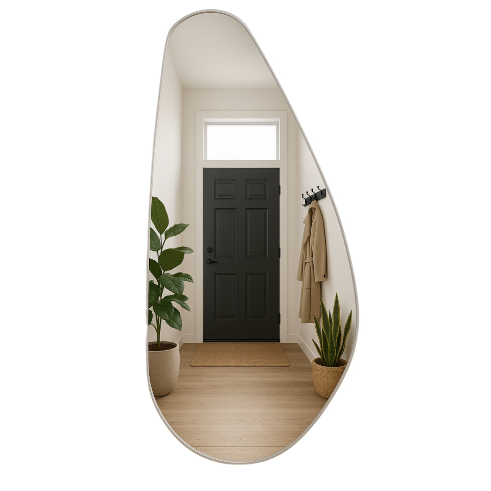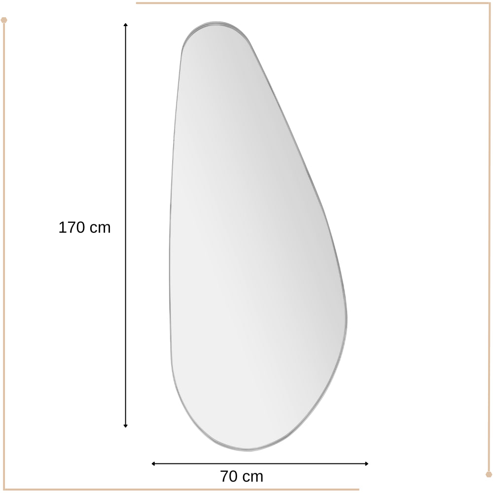 De MISOU BRITTA spiegel uit de MIRRORS AND MORE collectie combineert functionaliteit met moderne elegantie. Deze organisch gevormde passpiegel met een formaat van 170 x 70 cm is een opvallend stijlstatement voor je interieur. Dankzij het unieke design met zachte, vloeiende lijnen en een zilverkleurige afwerking, past hij perfect in moderne, Scandinavische of minimalistische woonstijlen. De BRITTA spiegel is ontworpen als staande spiegel, maar kan ook eenvoudig als wandspiegel gemonteerd worden. De organische vorm geeft een speels, eigentijds karakter, terwijl het royale formaat een volledig lichaamsbeeld biedt — ideaal voor in de slaapkamer, hal, kleedruimte of studio.