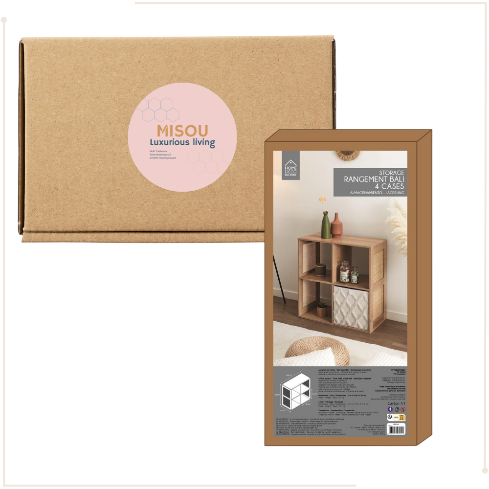 Compact, stijlvol en natuurlijk de MISOU Bali Wandkast met 4 vakken is dé oplossing voor georganiseerde opbergruimte met een bohemien touch. Deze vierkante vakkenkast is uitgevoerd in warme houttinten en voorzien van subtiele rotan details, wat zorgt voor een lichte en rustgevende uitstraling. Perfect als speelgoedkast, boekenkast of decoratieve opberger in de hal, woonkamer, kinderkamer of badkamer.