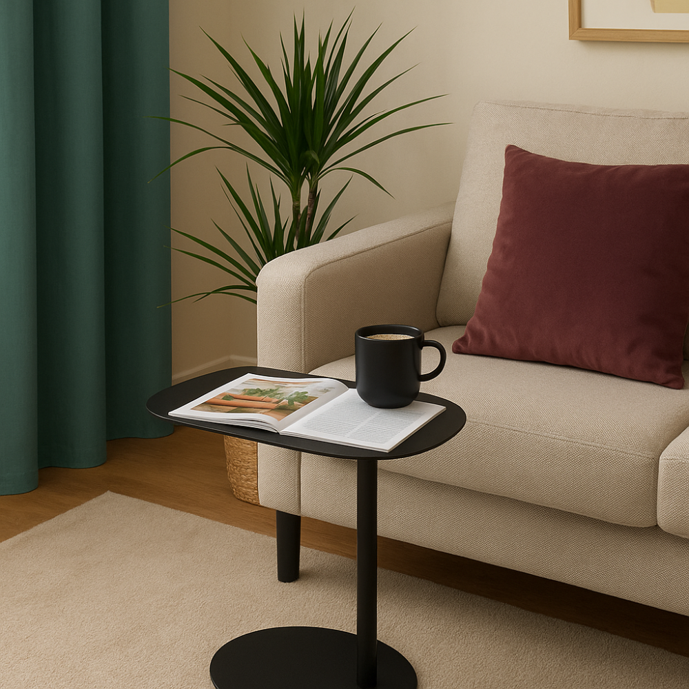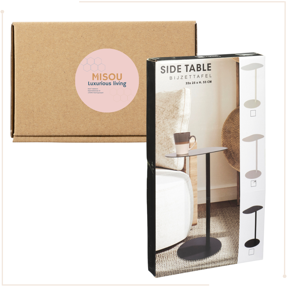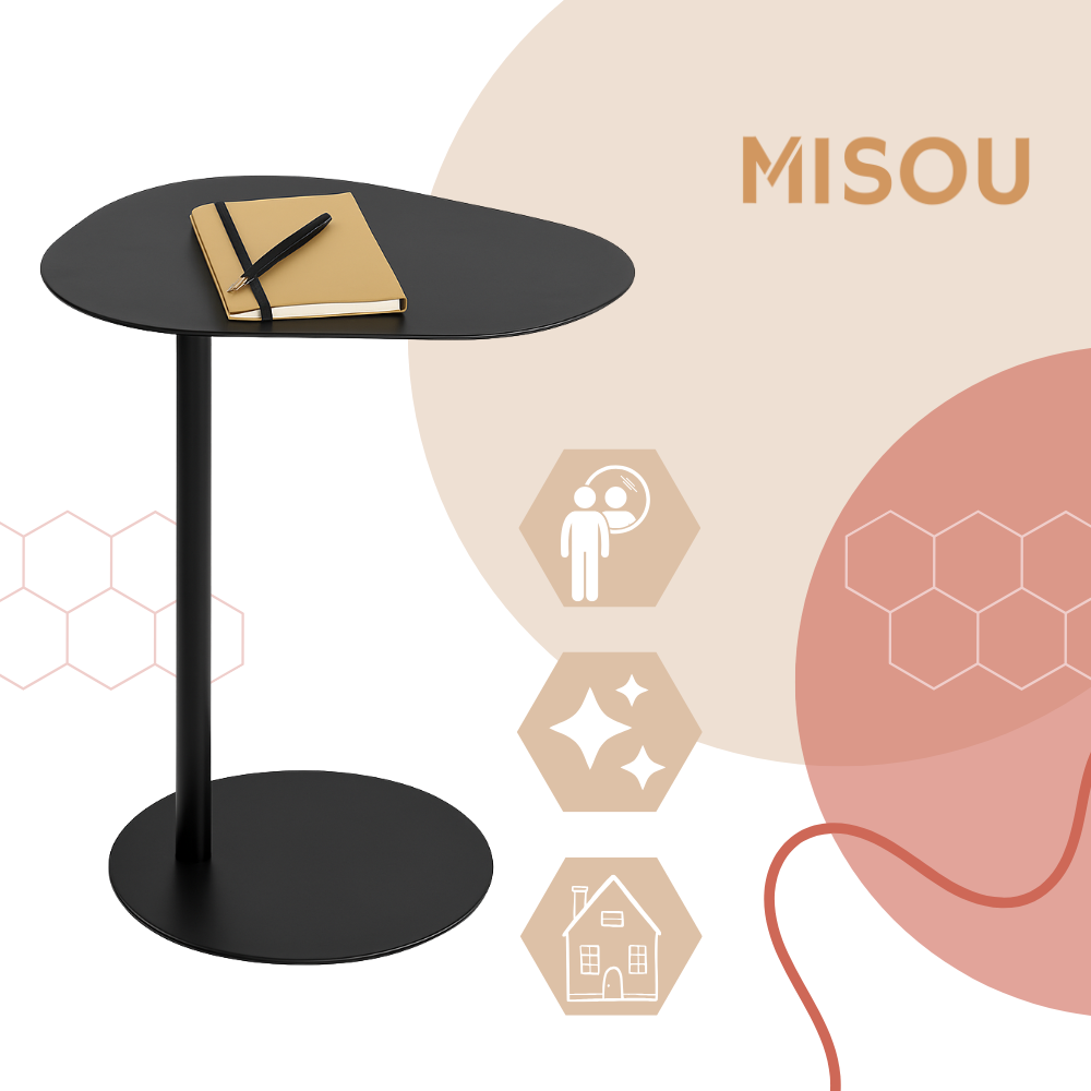MISOU Bijzettafel Banktafel Organisch Zwart op Voet Koffietafel 35x...