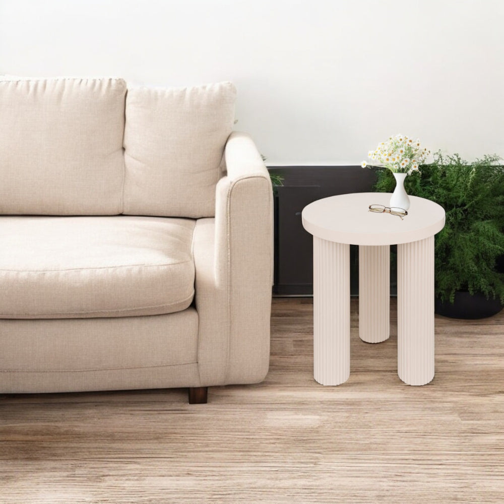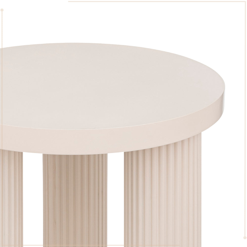 Breng stijl en functionaliteit samen in je interieur met de MISOU Bijzettafel DUNE. Deze elegante, ronde bijzettafel in een zachte beige nude tint is ontworpen om perfect in verschillende woonstijlen te passen. Of je nu houdt van een minimalistische, Scandinavische of moderne inrichting, deze tafel voegt een verfijnde en tijdloze uitstraling toe aan elke ruimte.