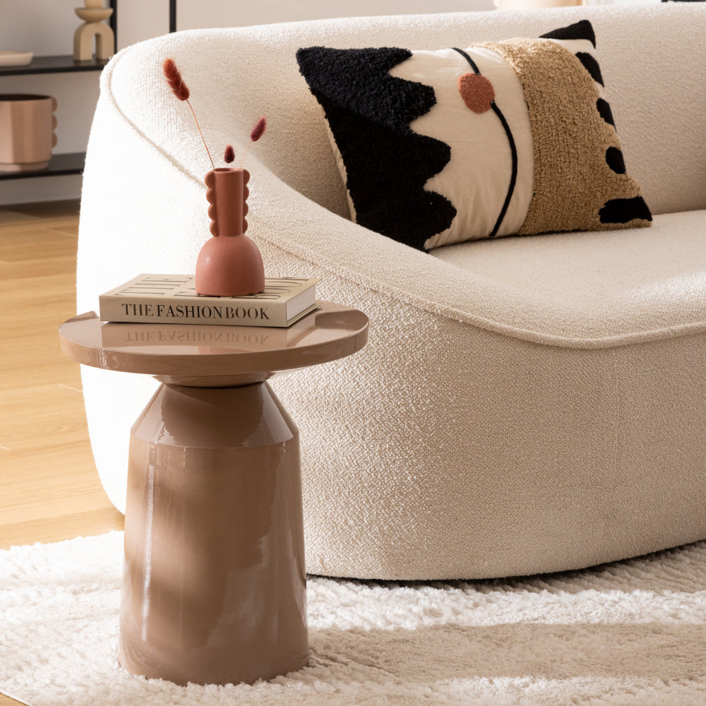 Geef je interieur een elegante en moderne uitstraling met de MISOU Bijzettafel Rond. Deze stijlvolle koffietafel heeft een organisch ontwerp met een luxe glanzende beige afwerking. Het minimalistische design en het stevige metalen materiaal maken deze tafel niet alleen een eyecatcher, maar ook duurzaam en veelzijdig in gebruik. Perfect als bijzettafel, koffietafel of decoratief element in je woonkamer, slaapkamer of hal.