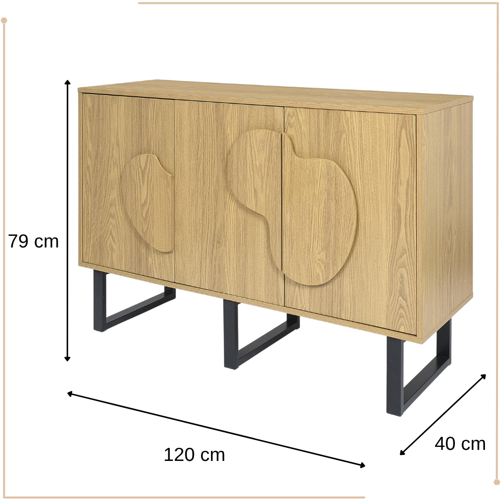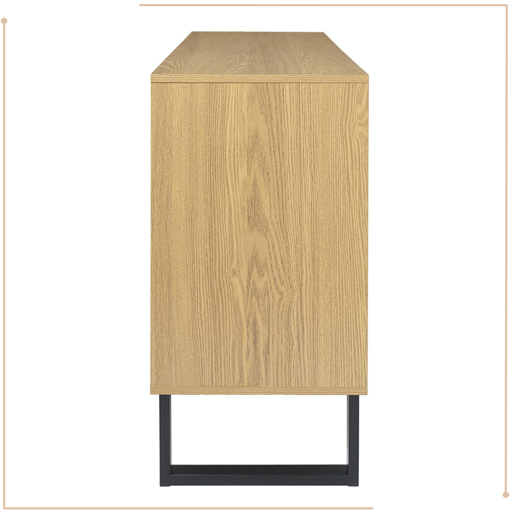 Stoer, stijlvol en verrassend praktisch – de MISOU Calypso Buffetkast is dé blikvanger voor je interieur. Deze industriële opbergkast combineert een warme houtlook met strakke lijnen en robuuste details. Het resultaat is een veelzijdige kast die perfect tot zijn recht komt in de woonkamer, eetkamer of hal.