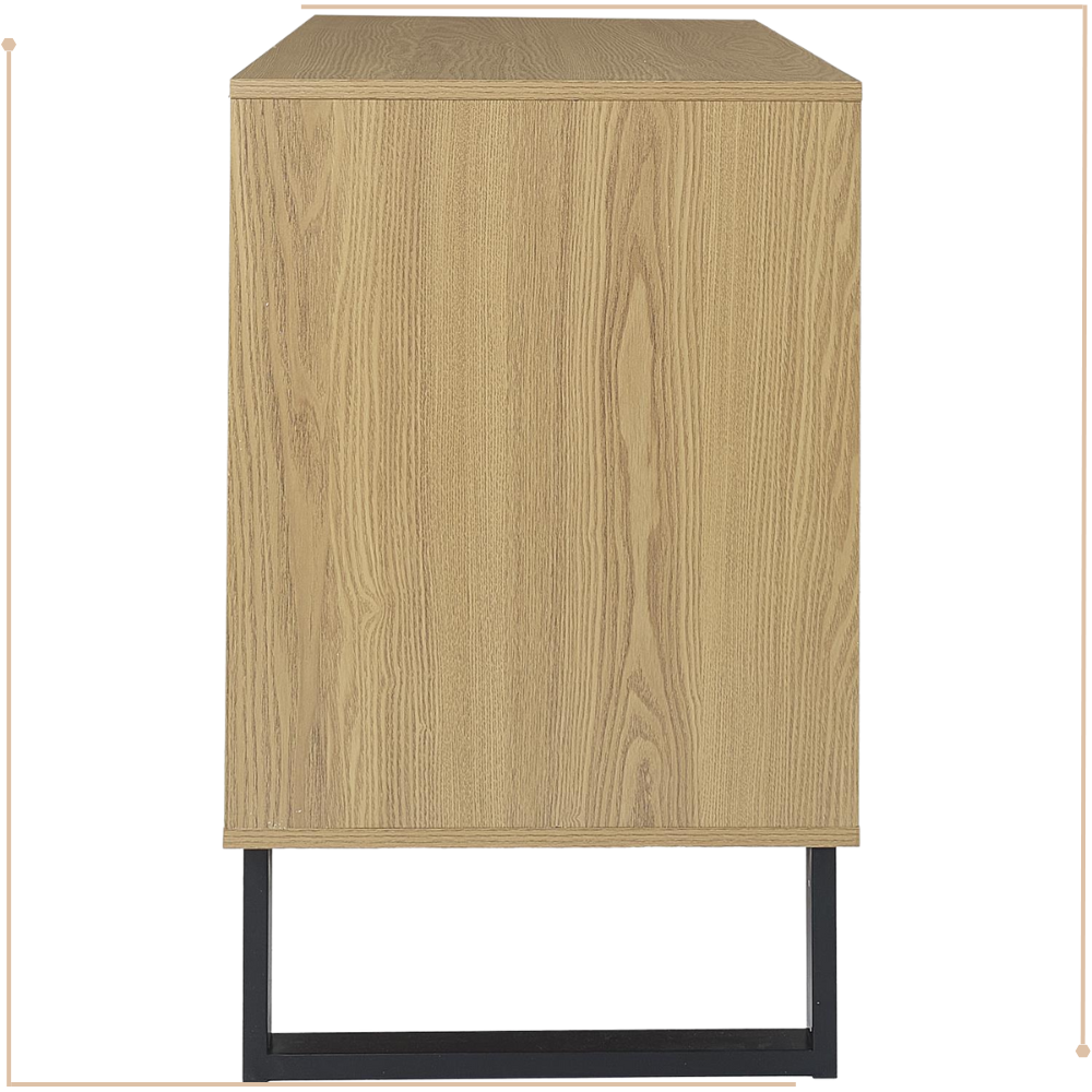Stijlvol opbergen doe je met de MISOU Calypso Ladekast. Deze compacte commode met drie ruime lades combineert functionaliteit met een elegant, industrieel design. De warme houtlook in combinatie met het strakke lijnenspel en de hoge poten geeft de kast een moderne uitstraling die in vrijwel elk interieur tot zijn recht komt.
