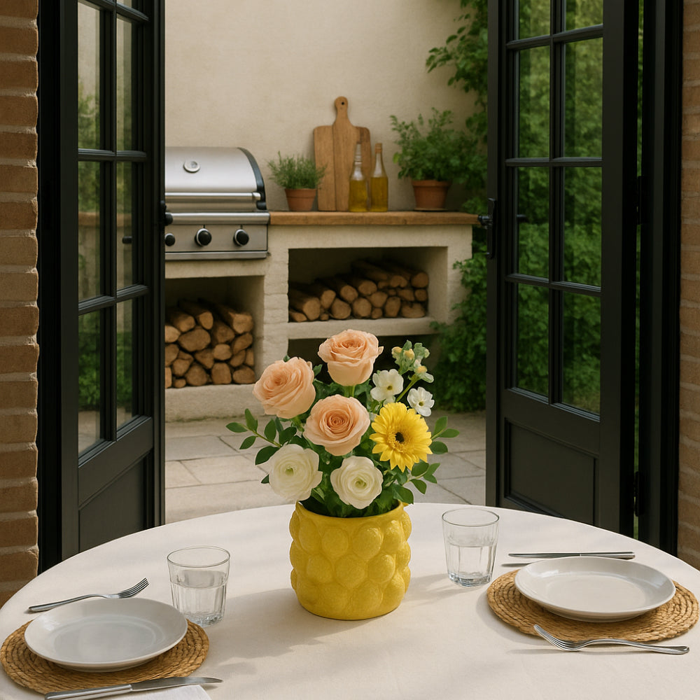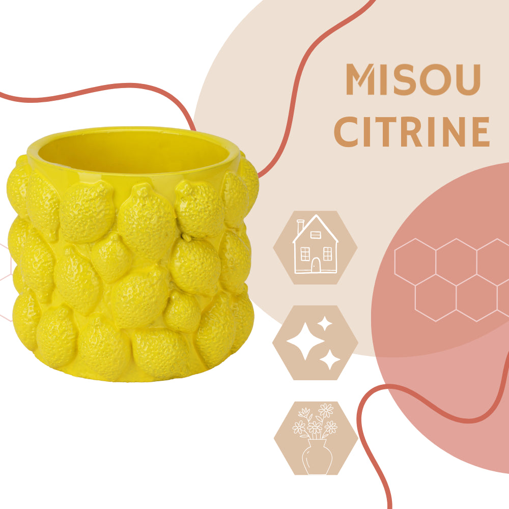 De MISOU Bloempot met Citroenen - Medium uit de CITRINE collectie is een stijlvolle en robuuste plantenpot die zowel binnen als buiten een mediterrane sfeer brengt. Met zijn handgeschilderde citroenmotief en natuurlijke cementafwerking is deze bloempot een echte blikvanger voor jouw interieur of tuin. Dankzij de stevige cementconstructie is de pot bestand tegen verschillende weersomstandigheden, waardoor hij ideaal is voor zowel binnengebruik als buiten op het terras, balkon of in de tuin. De hoge vormgeving biedt voldoende ruimte voor grotere planten, bloemen of kleine boompjes, terwijl het klassieke ontwerp moeiteloos aansluit bij diverse woonstijlen, van landelijk tot modern.