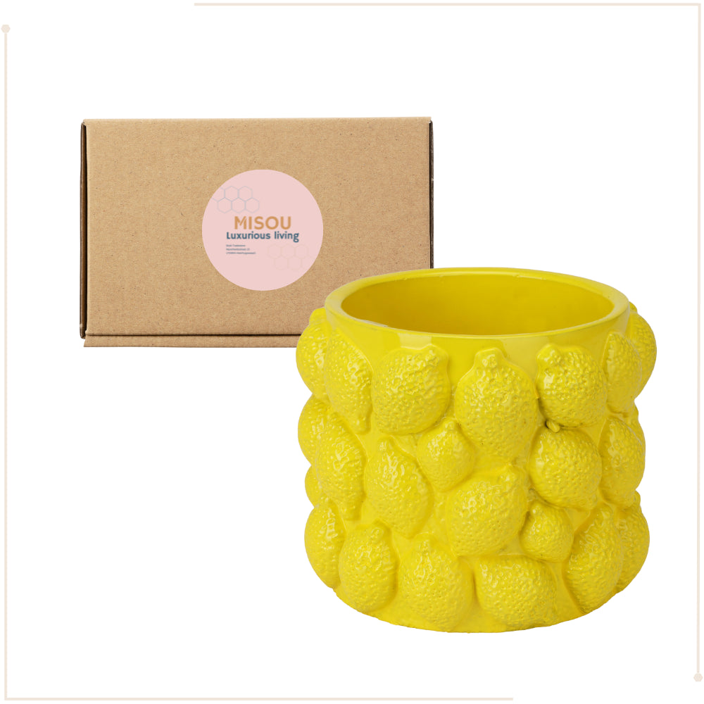MISOU Citroenvaas 14x14cm Bloempot met Citroenen Plantenpot Bloempo...