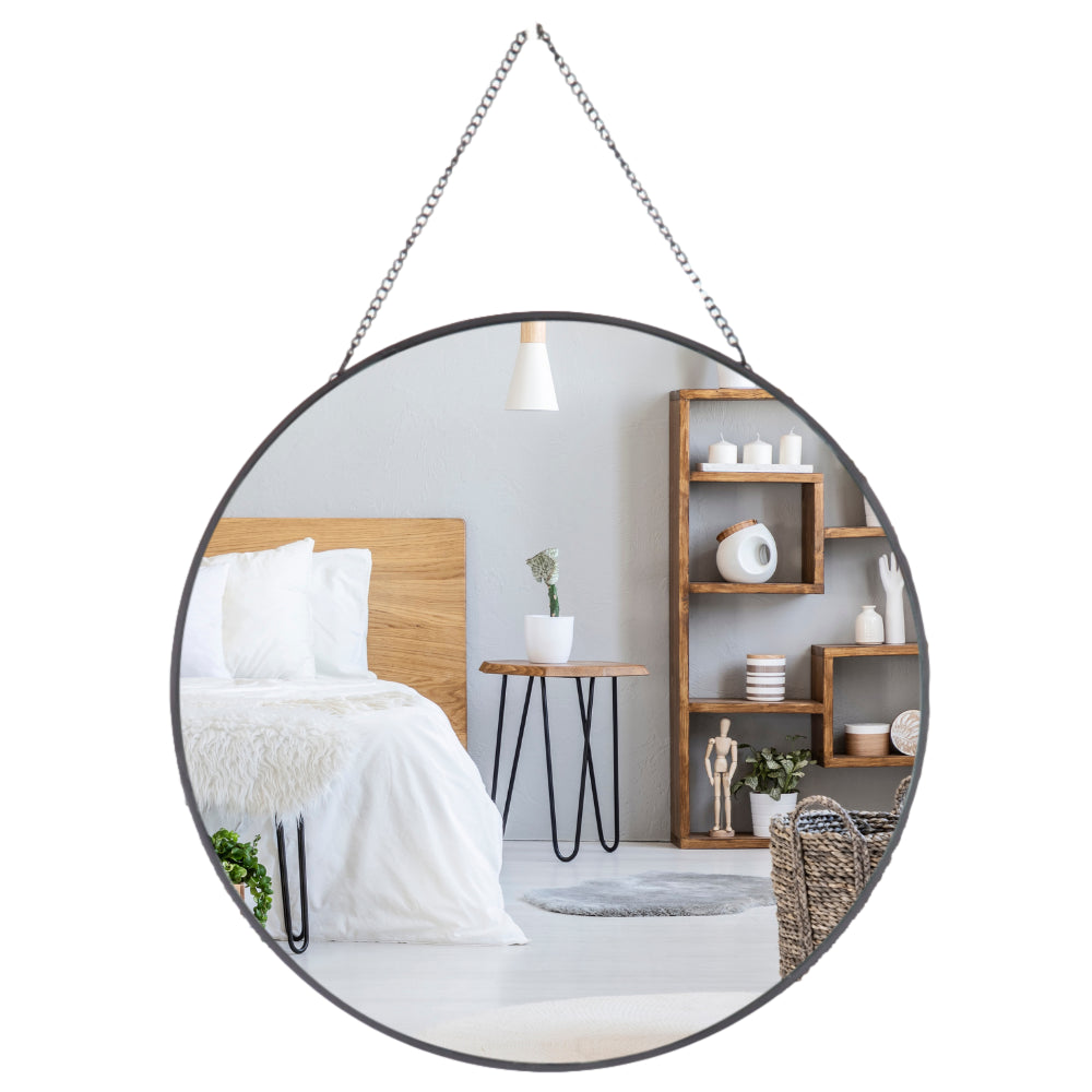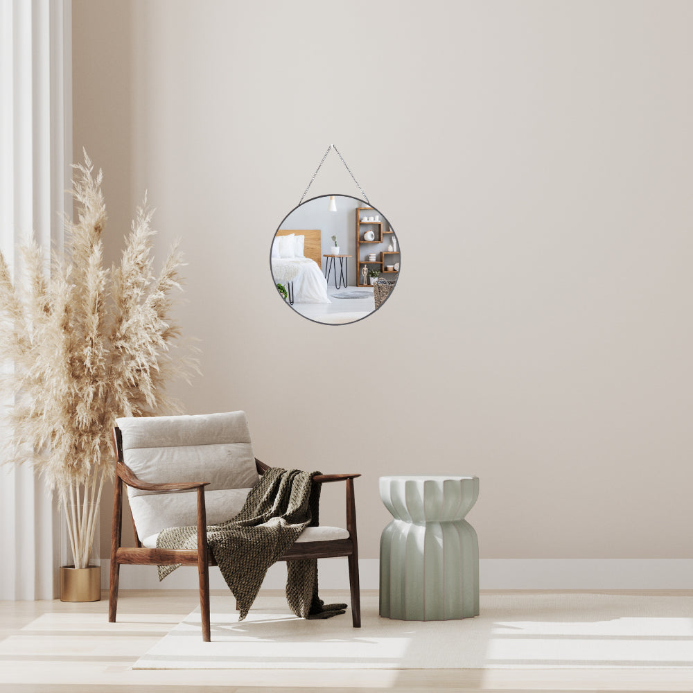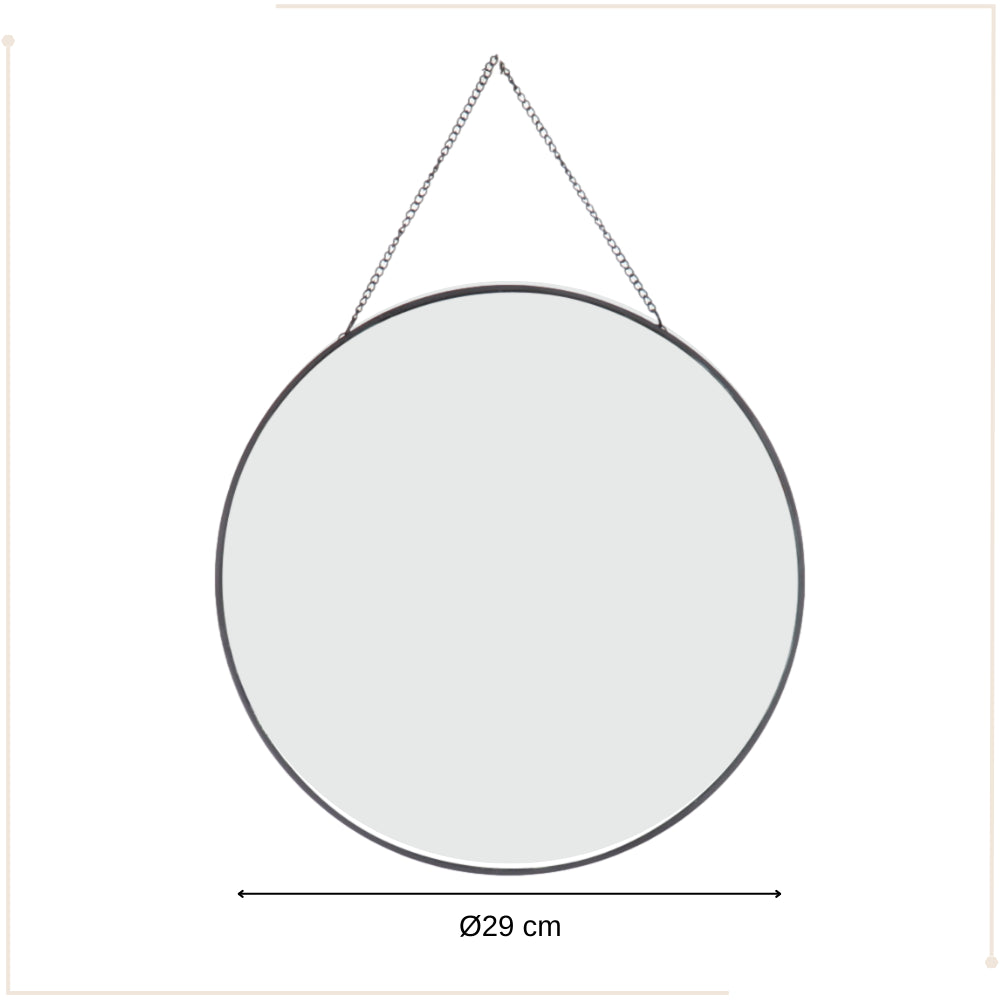 MISOU Spiegel Rond Glas met Ophangketting Modern Zwart 29 cm Glas W...