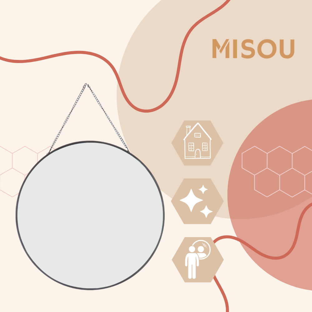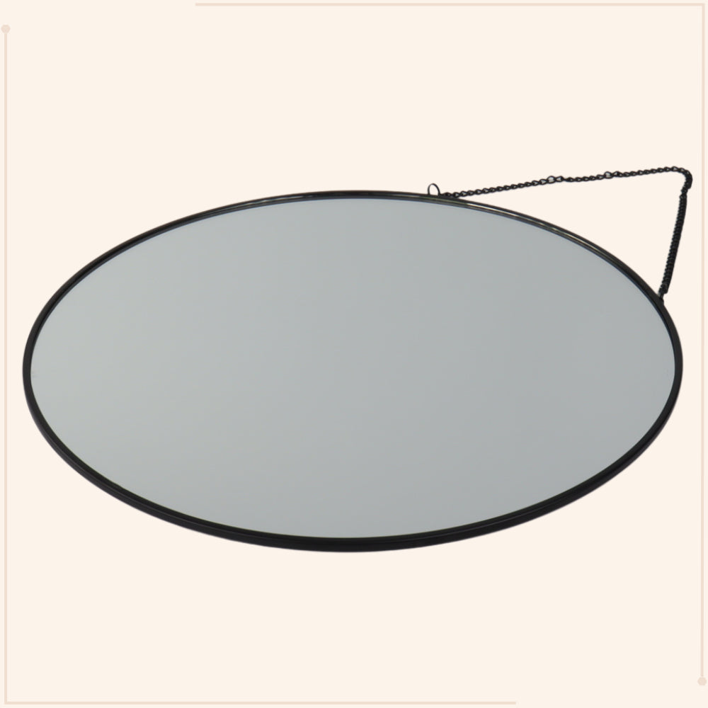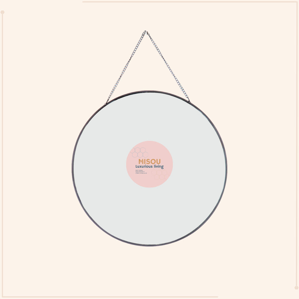 Ronde spiegel van MISOU. De spiegel is gemakkelijk op te hangen, omdat deze voorzien is van een ophangketting. De spiegel heeft een zwarte omranding en is gemaakt van metaal en glas. De diameter van de spiegel is 29 cm. De spiegel is ideaal om je huis mee te decoreren.
