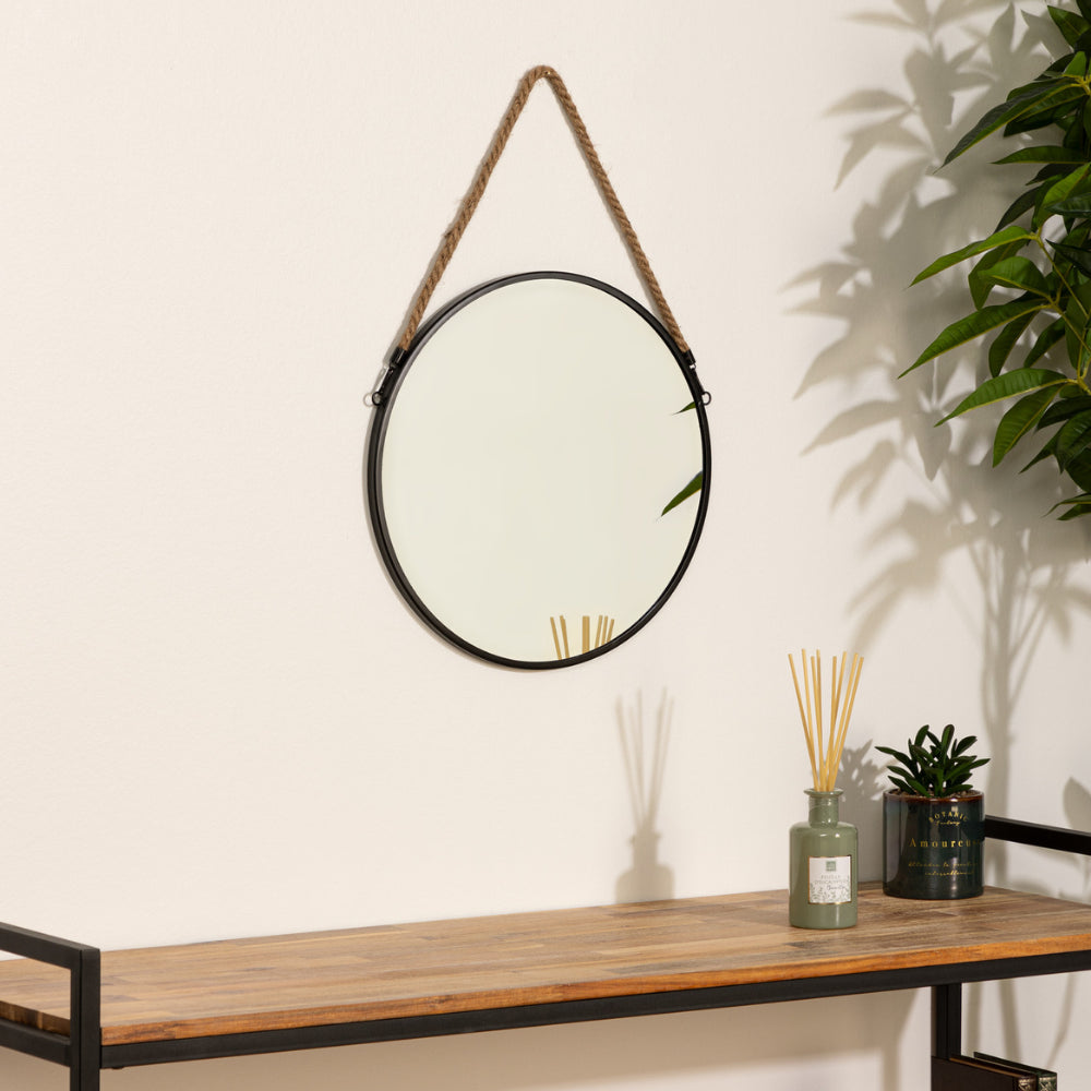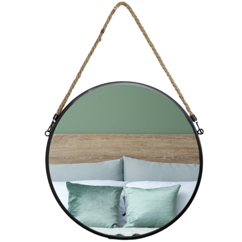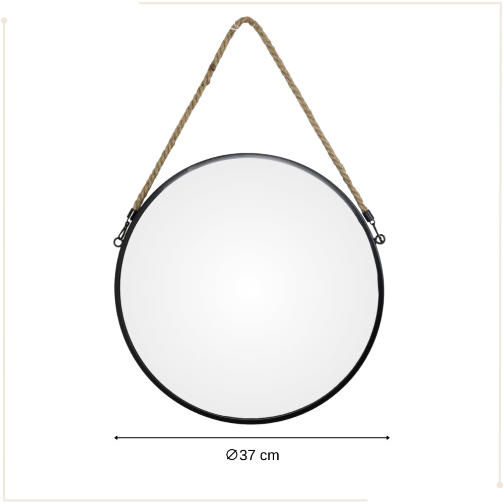 MISOU Spiegel Rond met Touw Zwart Spiegels 37cm Wandspiegel Wanddec...