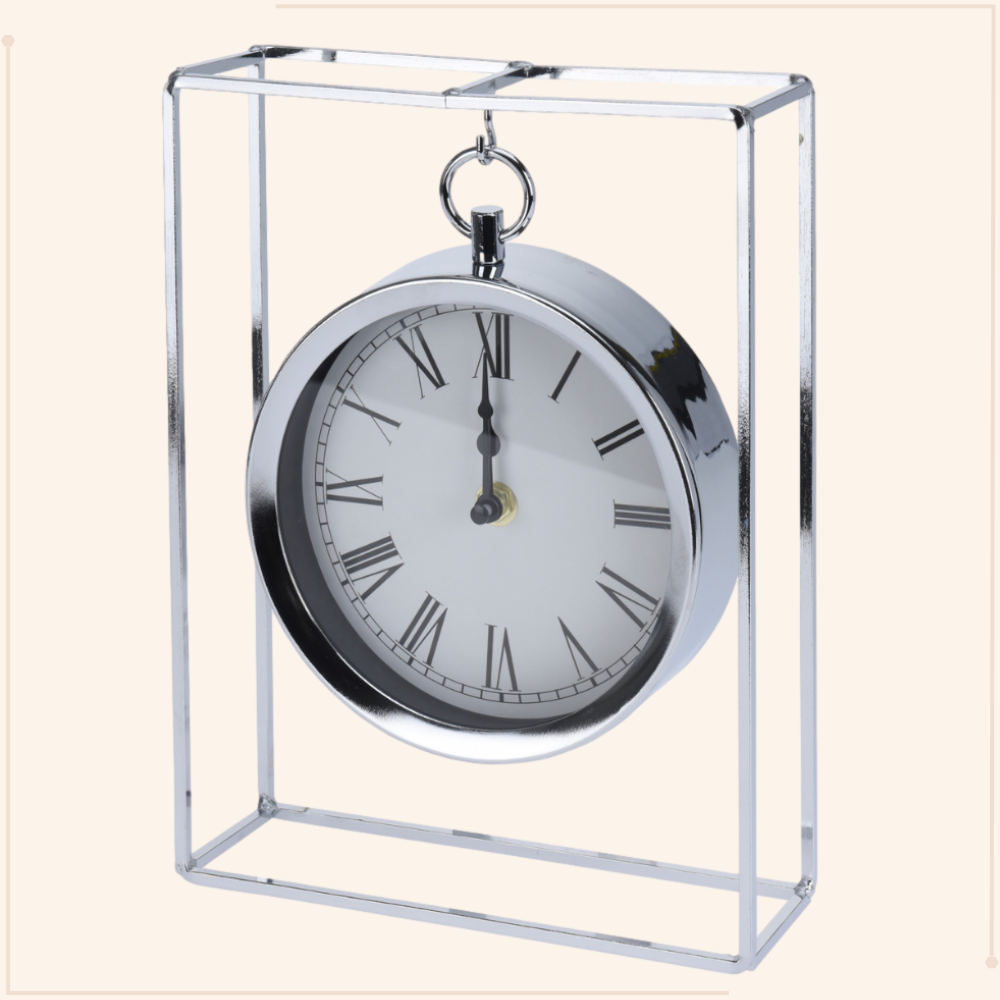 MISOU Tafelklok Hangmodel Zilver Metaal 25 cm Klok op Standaard Bin...