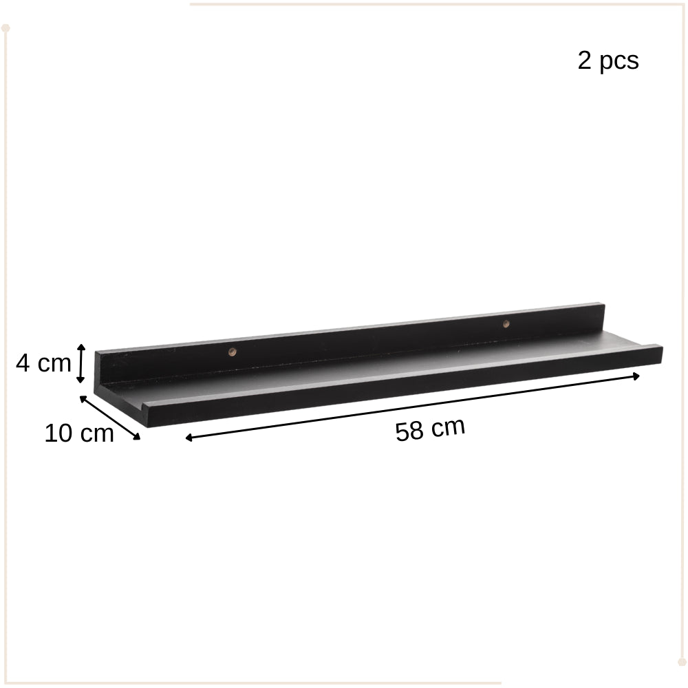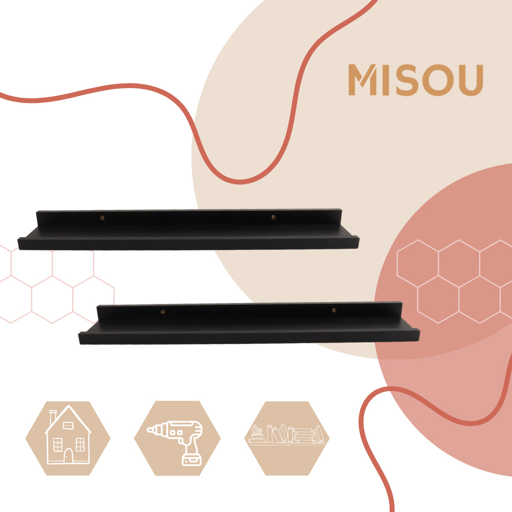 Ontdek de MISOU zwevende wandplanken, een stijlvolle toevoeging aan elk interieur. Gemaakt van duurzaam MDF in elegant zwart, elke plank meet 58x10x4cm. Perfect voor het tentoonstellen van foto's, boeken of decoratieve items. Eenvoudig te monteren en zwevend ontwerp voor een moderne uitstraling.